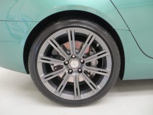 Optional 20-inch unmarked wheels in Graphite finish are made from forged aluminium and shod in Aston Martin recommended Bridgestone Potenza tyres measuring 245/40 ZR20 upfront and 295/35 ZR20 at the rear with ample tread. The Rapide was the first Aston Martin to feature dual-cast floating brake discs, which combine cast aluminium with cast iron to maintain high levels of heat resistance so combined with six-piston calipers at the front and four to the rear, stopping power is immense. The crystal clear Aston Martin inscription on the calipers a reminder of the power.