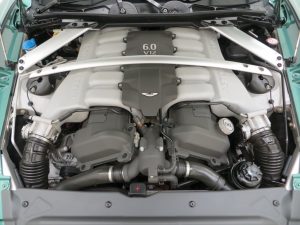 The Rapide is powered by Aston Martin’s iconic, 6.0-litre V12 engine. The all-alloy, quad overhead camshaft, 48-valve engine produces 470bhp with massive reserves of power and torque. 0-62mph is despatched in 5.2 seconds and a top speed of 184mph is quoted. The throaty, evocative sound of the V12 engine through the exhaust is sublime especially is ‘Sport’ mode when the bypass valve has been activated. Power is delivered to the rear wheels through a rear mid-mounted Touchtronic 2 automatic gearbox, a six-speed unit that is precisely calibrated with the engine to provide broad flexibility in ‘Drive’ mode, as well as having a highly responsive character in ‘Sport’ Touchtronic mode, when shifts can be activated using the cast aluminium, leather-covered paddles sited behind the steering wheel. ‘Sport’ Touchtronic mode sharpens and shortens gearshifts for a more dynamic driving experience.
