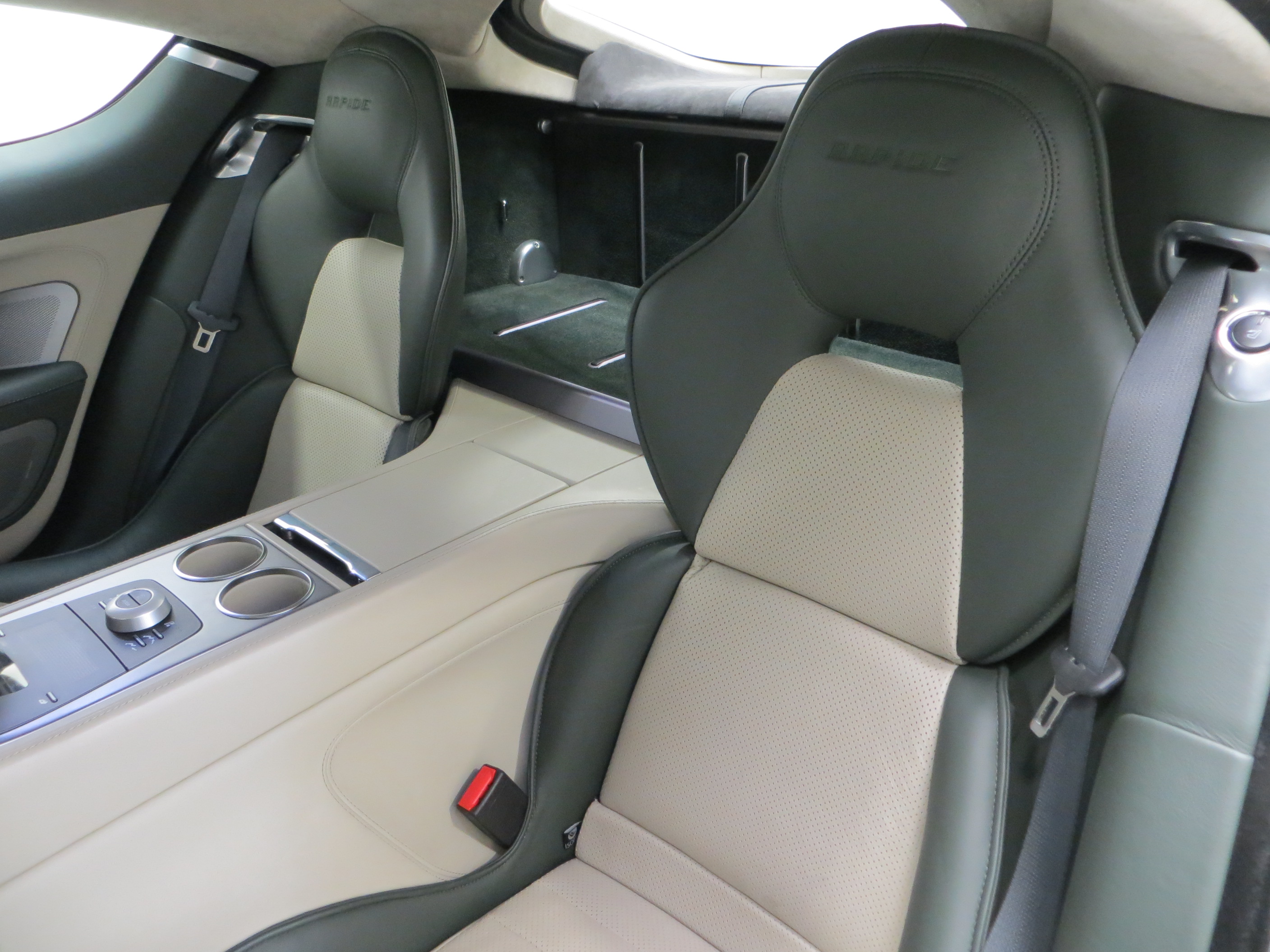 The Rapide was Aston Martin’s first four-door production sports car designed to look breathtakingly beautiful from every angle. The elegant bodywork is swathed in gorgeous and ultra-rare, Almond Green, (Code AST1339D). A letter from Steve Waddinham, Senior Product Specialist at Aston Martin Lagonda, confirms in writing this example is one of four Rapides made in Almond Green. A low roofline and glass-to-glass connection between the front and rear doors, with no exterior B-pillars helps give the car an uninterrupted, two-door coupe-like profile. Garaged and pampered, only a few stone chips are visible, barely worthy of a mention. Attention to detail is evident throughout from the classic Aston Martin grille to the finer extruded aluminium winged Aston Martin bonnet badge rendered in pewter and enamel, all in excellent condition. From the obvious Rapide’s voluptuous flanks to the discreet aluminium made bonnet, roof and door skins, this really is the ultimate sporting family car and above all, pure Aston Martin.