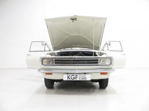 This wonderful top of the range Super Luxury model Viva HB is finished in the original colour of Grecian White, (Code 1WH). The paint finish is superb with only minor blemishes visible to the close scrutineer. All factory panels are straight and free from damage and signs of repair, a result of the very low mileage and dry storage. Trim sections including the optional door mirrors and SL badging to the wings and boot lid are fully intact. The chrome bumpers and trim are bright with only faint pitting visible, and the rubbers to the front and rear screens show signs of age. Further Super Luxury features such as the distinctly different grille and single coachline have been retained exactly as Vauxhall intended. Original black and white pressed steel plates remain fitted along with a Vauxhall Viva Owners Club sticker. A rare surviving and unmolested example, presented in beautiful condition.