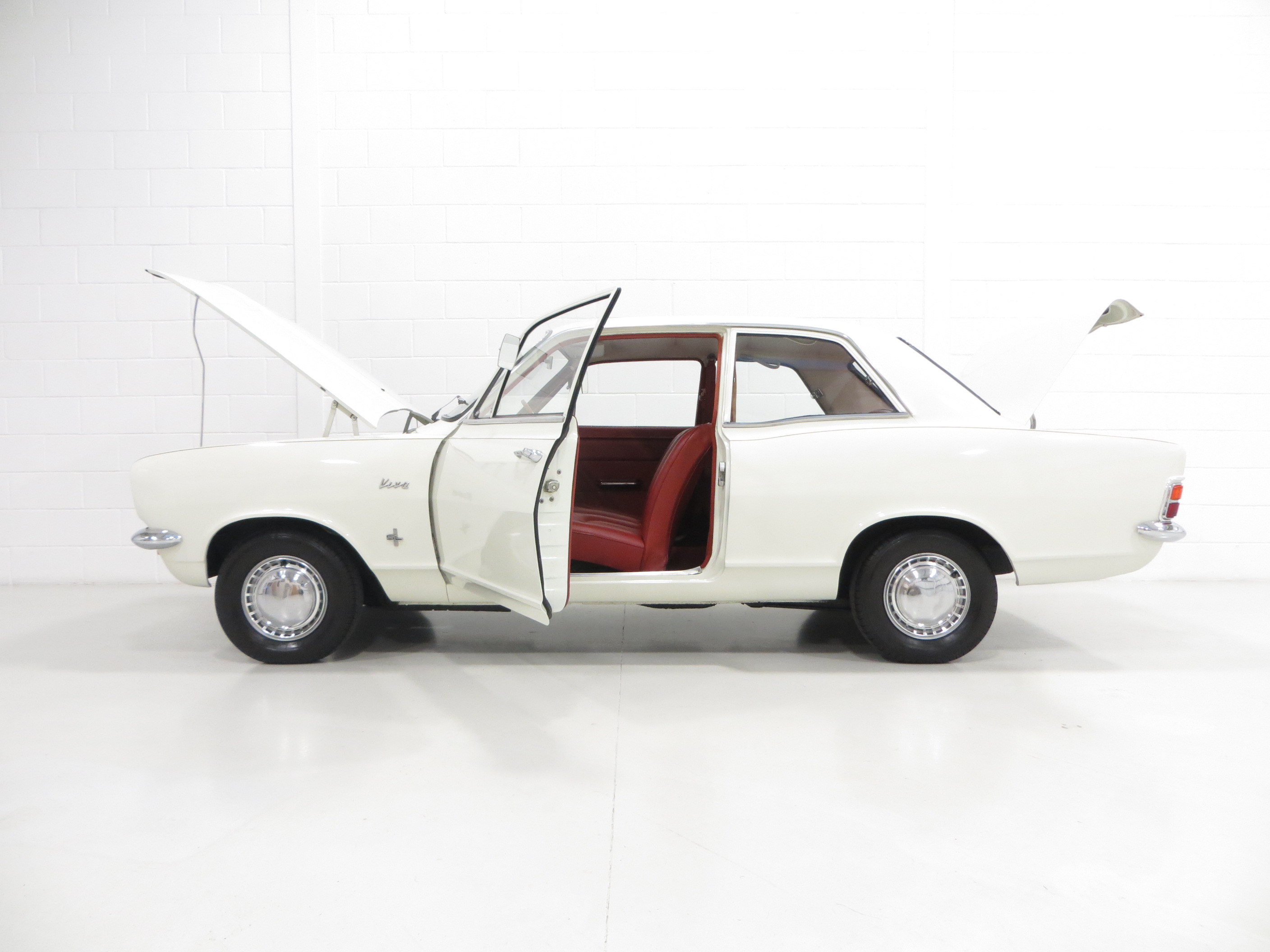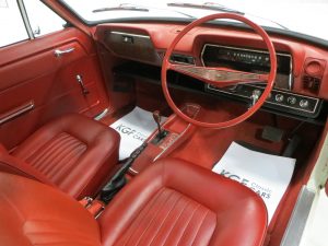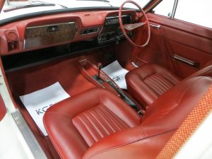 The factory original interior in this top of the range for luxury example is 100% original and just as it left the assembly line at Ellesmere Port. Unique to the Super Luxury model, the Pleated Ambla upholstery in Casino Red, (Code 1R2), adorns the special moulded front and rear seats. The fabric is in excellent condition and serves as a true reflection of the genuine low mileage. Only a tiny repair to the driver’s seat back is visible to an otherwise flawless trim. The matching full door cards are perfect, and the deep-cowled fascia and original switchgear are virtually as new with only slight aging to the chrome instrument binnacle bezel. The headlining is fully intact and the Casino Red carpeting shows only very minor wear. A beautifully preserved classic Vauxhall Viva interior, worthy of the term ‘timewarp’.