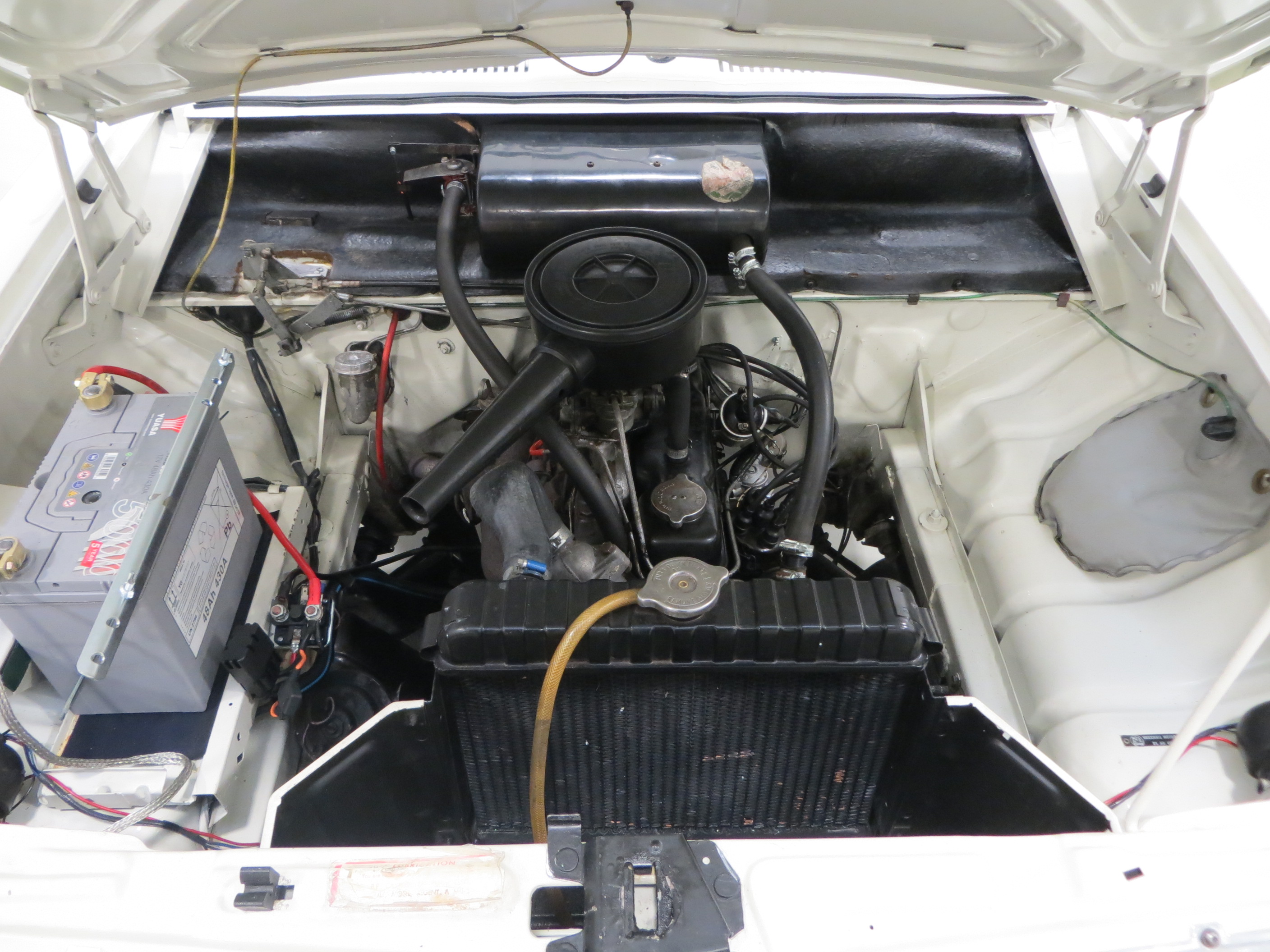 Pressed steel wheels fitted with tri-nickel chrome plated steel hubcaps and Super Luxury embellishers show only tiny markings. Matching branded 155/80 R12 tyres have masses of tread remaining. Hydraulic 8 inch drum brakes all round with two leading shoes at the front offer adequate stopping power.
