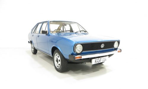 This incredibly rare Mk1 Passat remains totally unspoilt and showcases remarkable originality. The factory Ancona Blue Metallic (code L97B), a cost option from new, displays a beautiful deep shine and uniform finish that defies its age. The vehicle has been garaged all its life. All trim sections, lights, rubbers and badges are incredibly well preserved. The Ziebart plug holes remain as evidence to the original owner’s forward thinking, knowing perhaps that he were to keep the car for 35 years! The supplying dealer pressed number plates, rear screen sticker and Ziebart sticker remain attached. Even the running in schedule is still affixed in the windscreen! This humble base model Passat is a fantastic testament to Volkswagen build quality, and puts emphasis on just how far the latest variant has come. Hugely nostalgic.