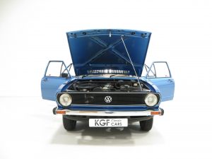 This Passat is fitted with the four cylinder 1296cc engine with an overhead camshaft producing 60bhp at 5800rpm. This economical option achieves a top speed of 92mph and sales literature quotes 0-50 in 11 seconds. The beautifully clean engine bay is totally standard and original with VW/Audi panel stampings along with many genuine VW/Audi Group parts which are clear to see. The four speed all syncromesh gearbox is precise and a joy to use.