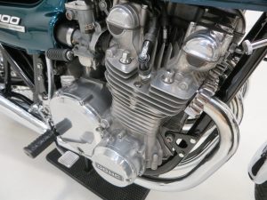 The four stroke four cylinder in-line transversely mounted air cooled DOHC engine has a displacement of 903cc and produces a thumping 82bhp, enough to smoothly propel the owner to a top speed of 132mph. Work totalling thousands by Rising Sun Restorations for a full crank up engine rebuild is included in the history file. The engine number is Z1E071938 and is correct along with the Mikuni carburettors. The exhaust note is spine-tingling and changing through the 5-speed constant mesh gearbox is a joy.