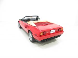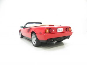 From a total production of just 810 3.2 Mondial Cabriolets this exquisite November 1987 produced Ferrari represents a rare car. With just 2,868 miles from new it represents a virtually unrepeatable car too! Coming from the dry state of Texas and owned by Ferrari collector and enthusiast, Dr Raymond Westbrook, this car was sourced by the current UK owner famous for housing some of the lowest mileage Ferrari models in existence. The only reason for parting with this collectable example is to house an identical car with even fewer miles! Limited history is present due to the low mileage covered other than a CarFax data report records revealing 10 annual check-ups between 1995 and 2002. As piece of mind the vehicle has undergone a full service, cambelt change and check over by Migliore Cars Ltd in March 2017 at considerable cost also including conversion of headlamps and rear fog lights for UK purposes. At this time Director Kevin White of Migliore Cars Ltd inspected the car to offer a professional opinion in writing that the mileage is correct. The vehicle has a valid UK MOT certificate to enable the next custodian to be the first UK registered keeper.
