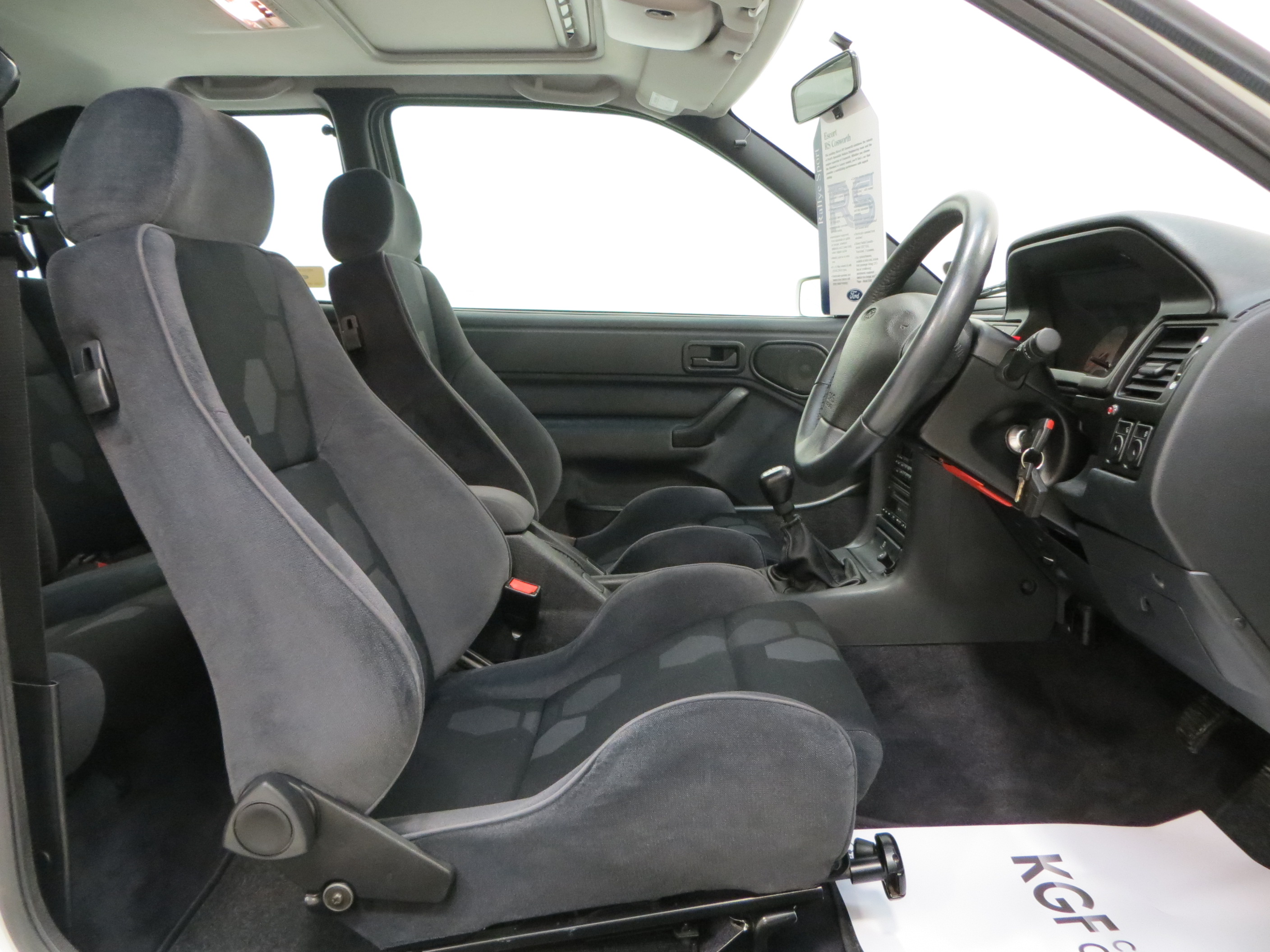 Built in November 1995 at the Rheine Assembly Plant in Germany, this factory specified Luxury model was registered new to its first owner on the 14th March 1996 by Ford RS Agent Whites of Taunton. The incredible low mileage of 15,381 miles is verified in the comprehensive and beautifully presented history file. The original Ford service booklet contains stamped entries from Ford Main Dealers and marque specialists, including renowned and respected Graham Goode Motors Ltd of Leicester. Furthermore, two huge and impeccably ordered history folders track the vehicle maintenance from new and documents no less than four cambelt changes, the most recent being January 2017 along with an engine service using genuine Ford components. Every MOT certificate acquired throughout the cars lifetime is present to absolutely verify the mileage. Completing the superb history is the original Ford wallet containing all handbooks and guides, spare keys including red master key and even an irreplaceable RS rear view mirror hung specification placard. An extraordinary example and worthy of the best Ford collections.