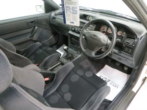 Genuine and immaculate Ford RS 8 X 16” five-spoke alloy wheels are shod in correct and specially formulated 225/45 ZR16 Continental Sport Contact tyres with masses of tread remaining. Electrically-controlled ABS anti-lock system with two microprocessors and ventilated front and rear discs offer immense stopping power.