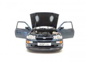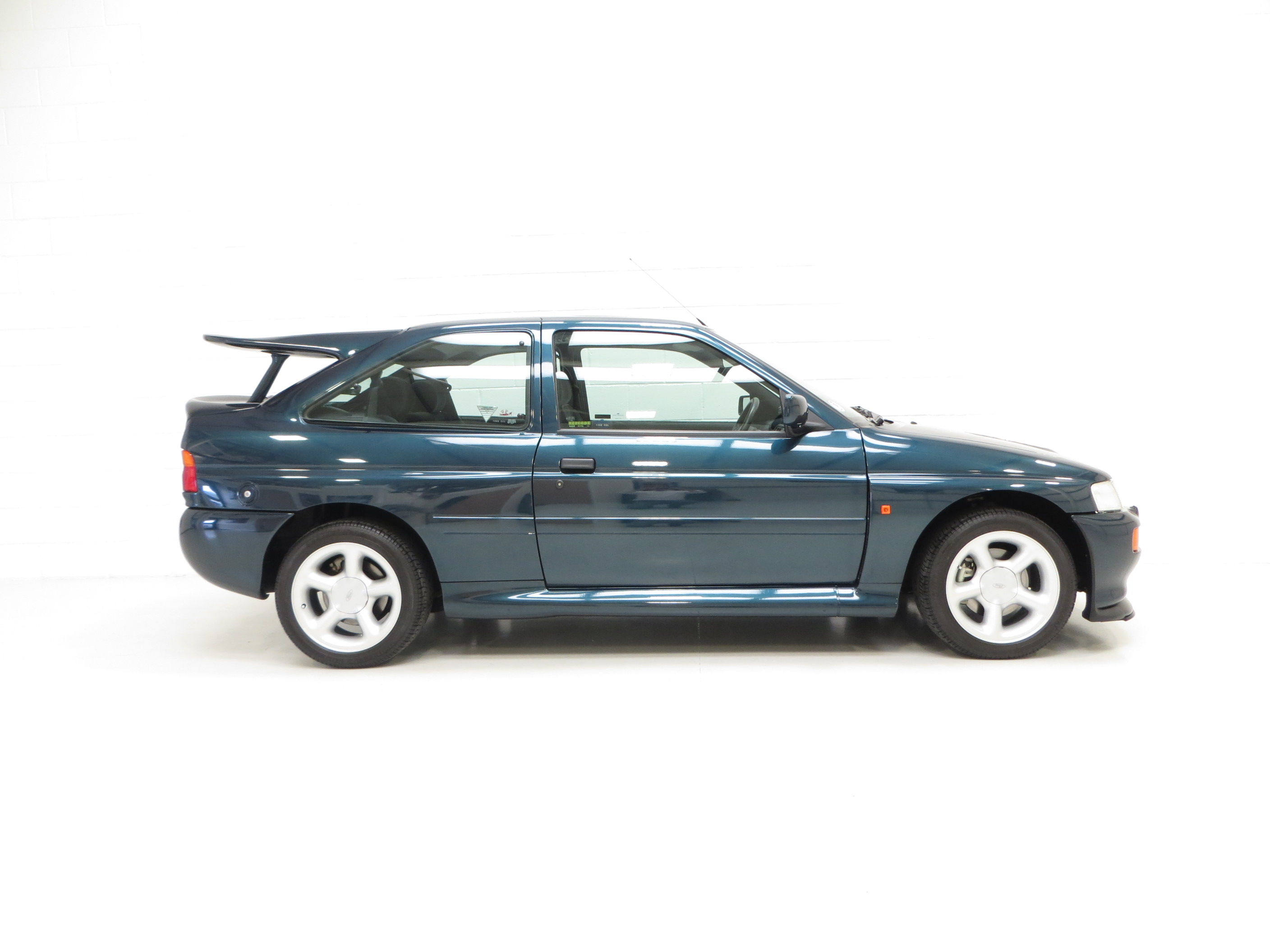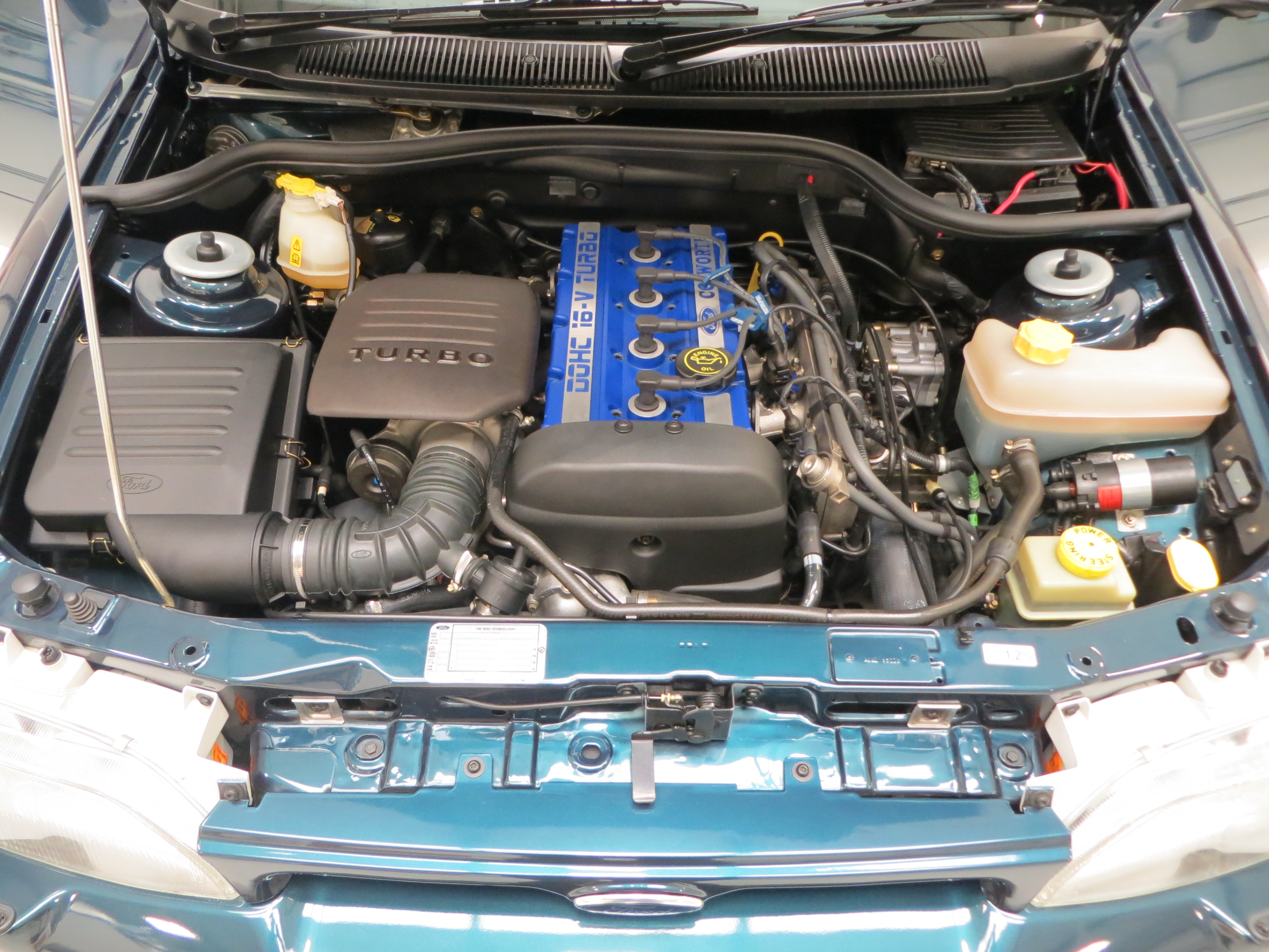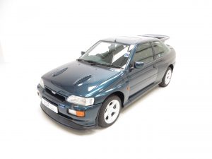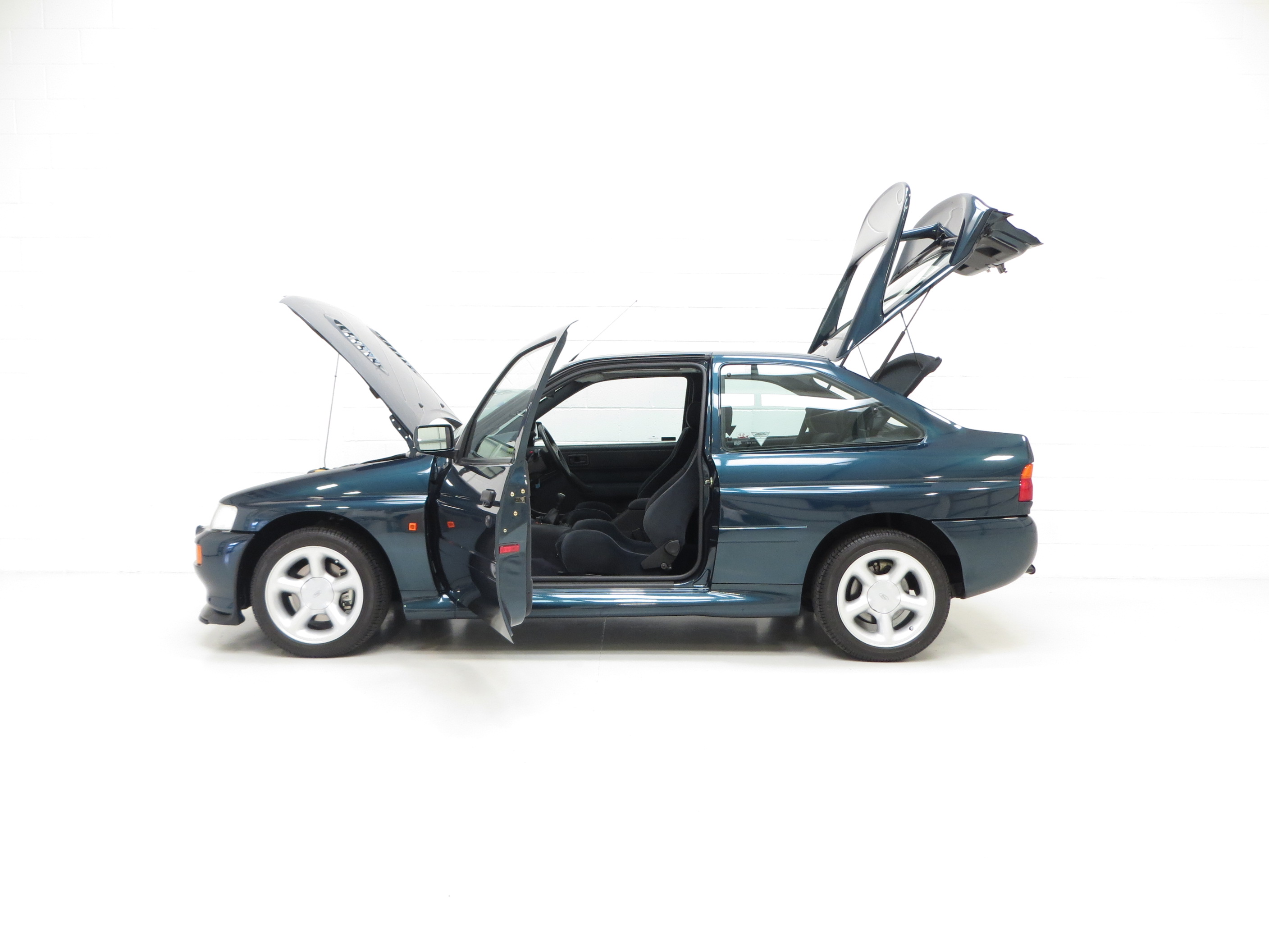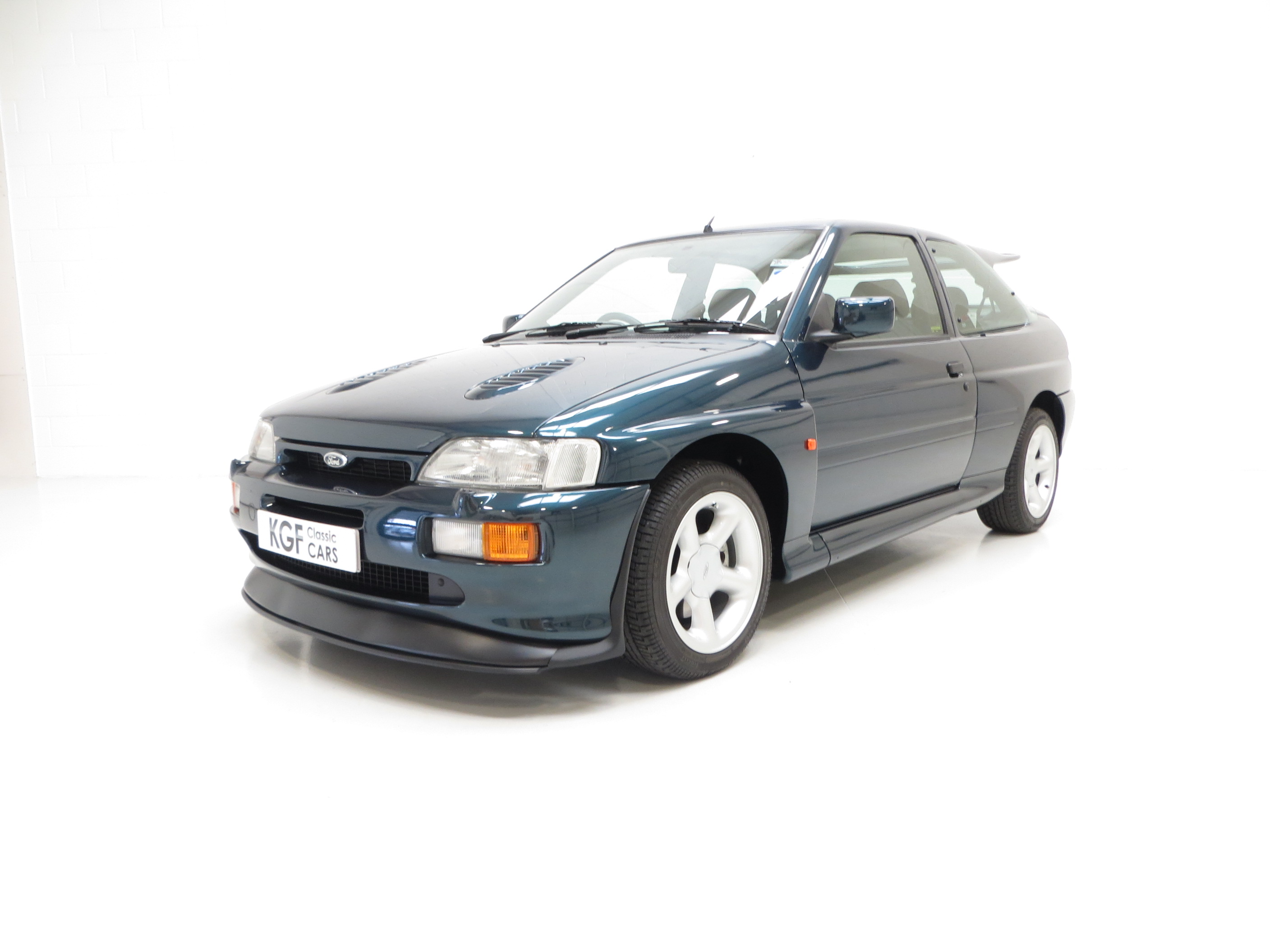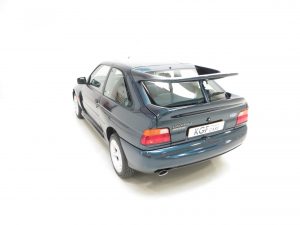 The Ford Escort RS Cosworth was a sports derivative and rally homologation special of the fifth generation Ford Escort. It was designed to qualify as a Group A car for the World Rally Championship. It was available as a road car from 1992-96 in limited numbers from Ford’s Specialist Vehicle Engineering, (SVE), group. It combines the hand-assembled engine expertise of Cosworth and the coach-building crafts of Karmann. In order to accommodate the larger Cosworth engine and transmission Ford developed the car around the chassis and mechanicals of its predecessor, the Sierra Cosworth. A very rare car with only 7,145 examples being produced with the first 2,500 units being Big Turbo Homologation cars. (Source Wikipedia, 1995 Edition One RS Brochure and the RS Owners Club).