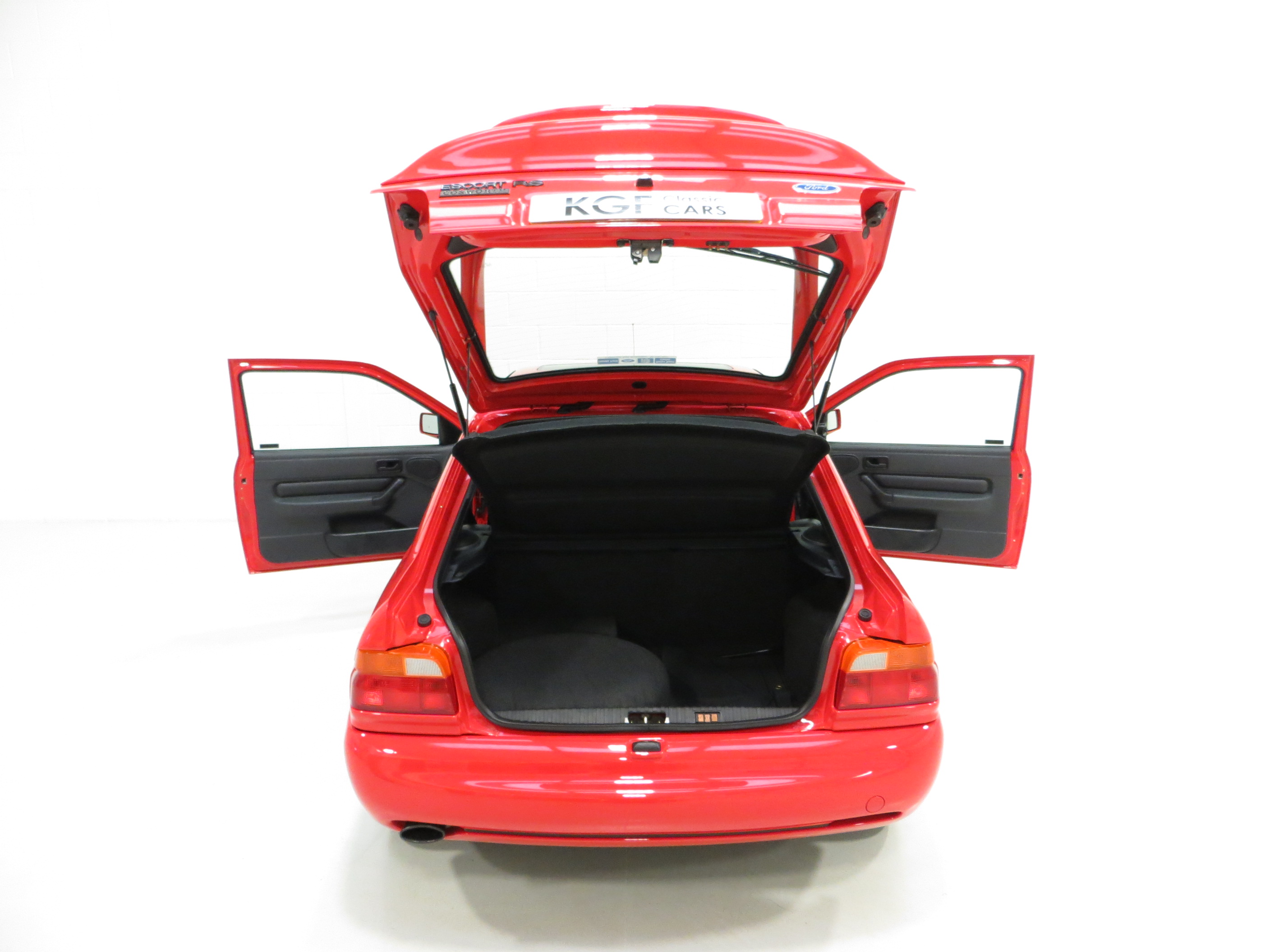 The interior of this early Escort RS Cosworth Lux Edition is as new and exactly as Ford intended. The Recaro seats finished in Raven Leather are divine with a fullness only witnessed on incredibly low mileage examples never exposed to ultraviolet light. The desirable early leather covered steering wheel with three horn buttons remains fitted. Being one of the first 2,500 cars the pristine boot area still has the water injection kit never plumbed in and unused to comply with homologation. Most were removed by the Ford dealers to avoid customer confusion. A Ford immobiliser has been fitted from new along with Ford carpet mats. Stunning.