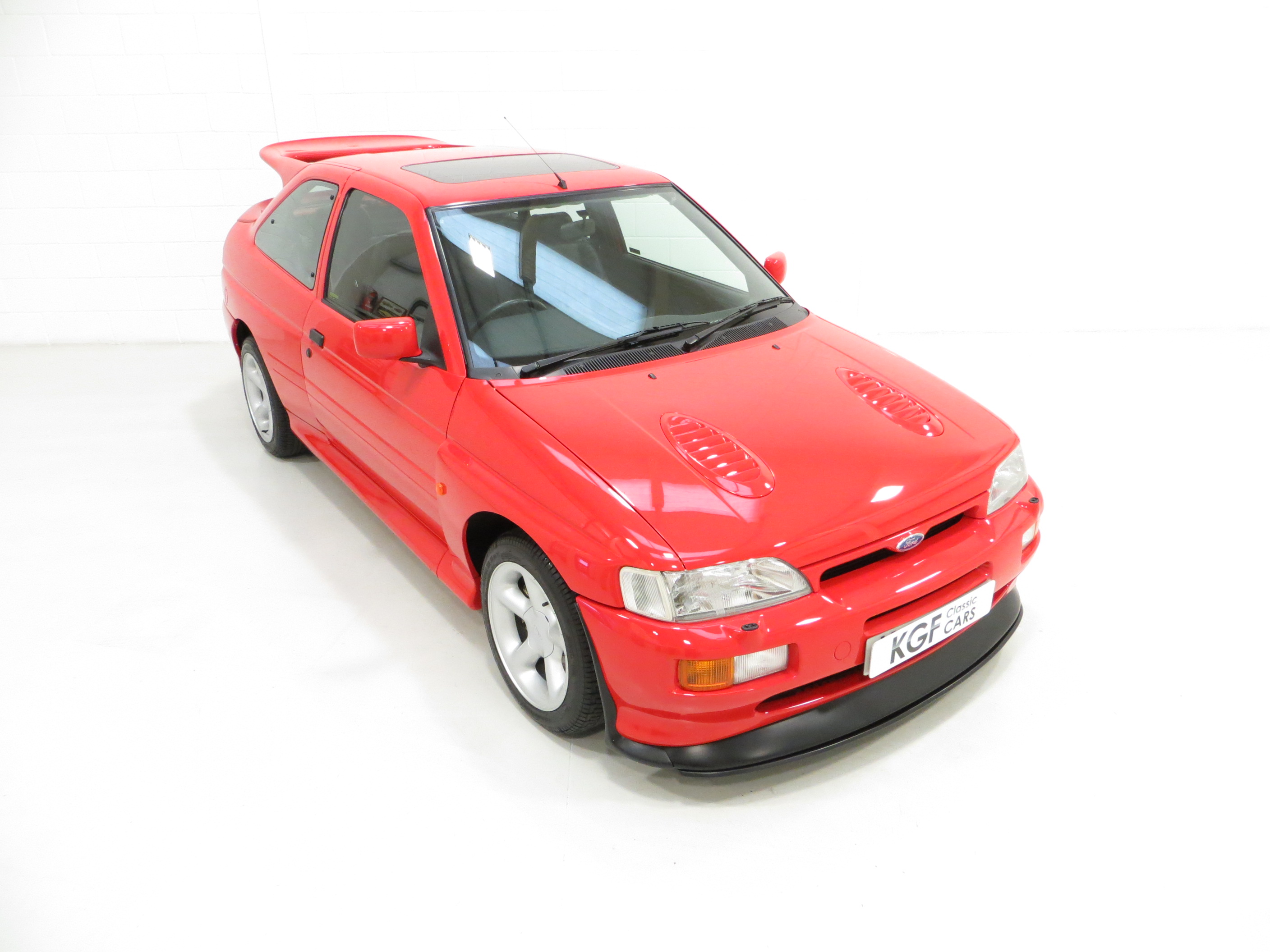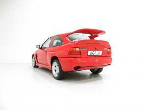The Ford Escort RS Cosworth was a sports derivative and rally homologation special of the fifth generation Ford Escort. It was designed to qualify as a Group A car for the World Rally Championship. It was available as a road car from 1992-96 in limited numbers from Ford’s Specialist Vehicle Engineering, (SVE), Group. It combines the hand-assembled engine expertise of Cosworth and the coach-building crafts of Karmann. In order to accommodate the larger Cosworth engine and transmission Ford developed the car around the chassis and mechanicals of its predecessor, the Sierra Cosworth. A very rare car with only 7,145 examples being produced with the first 2,500 units being Big Turbo Homologation cars. (Source Wikipedia, 1995 Edition One RS Brochure and the RS Owners Club).