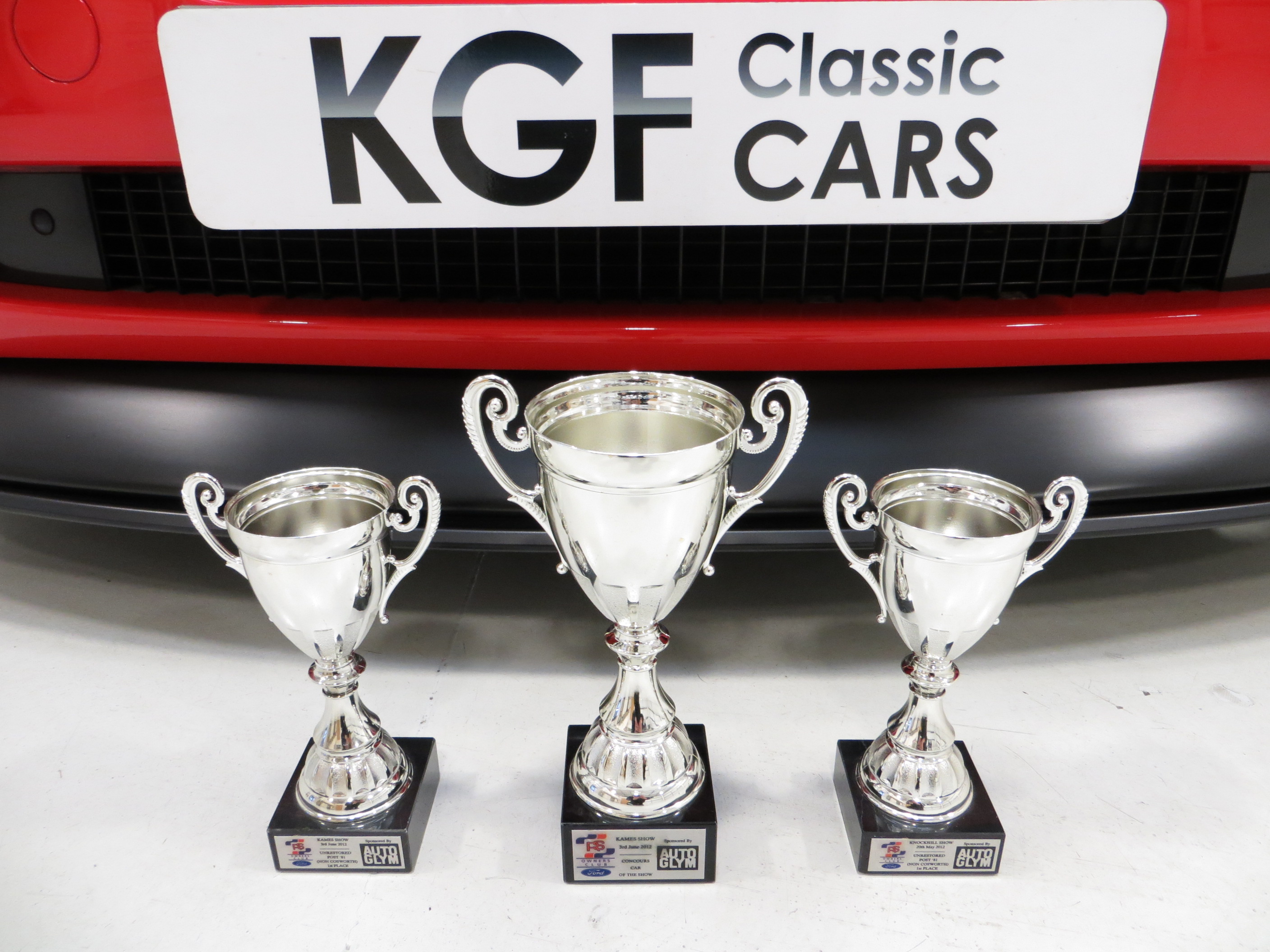 This desirable Big Turbo model was built in August 1992 at the Rheine Assembly Plant in Germany and registered new on the 19th October 1992. Supplied by Hendy Ford in Southampton a further seven entries in the original service book were carried out by them for maintenance. Previous MOT certificates and a Concours logbook are also included. K43MOR was advertised for sale privately in April 2010 for a record price of £35,000 by its devoted owner on Pistonheads and Social Media platforms. Within days of placing the advert a family holiday to the Canaries was embarked on and during which the car was stolen from the family home. Soon discovered by the police just 10 miles from the owners house, hidden and ready for disassembly, but thankfully halted due to the quick find. The vehicle is HPI Clear and was subsequently purchased by Mark Bailey from the world famous Bonkers RS Collection. A display board when housed in his collection and included with the history file reads; ‘7,632 miles from new, has won every trophy known inc RSOC National Day five times, one of the lowest mileage vehicles left worldwide, this one is thought to be the best in existence’. Sold off by Mark with all the other Bonkers Ford RS Collection this example has been owned by respected Ford RS collectors since, appreciative of the amazing low mileage condition and early Big Turbo rarity.