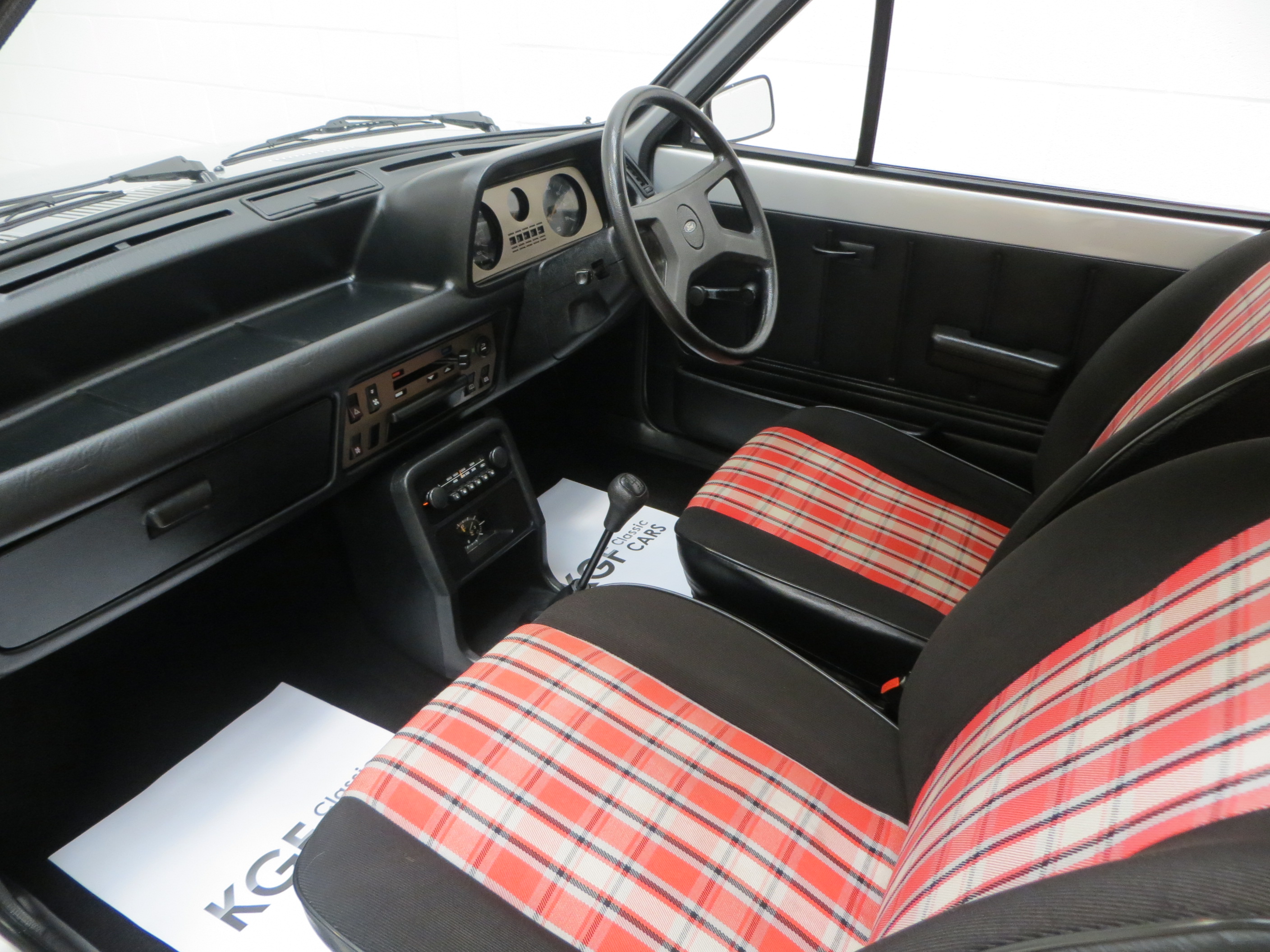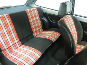 Mollycoddled will help explain why the reclining front seats finished in Savannah and Carla Supersport Red fabric, (Code K1), are still original items from new. Never subject to a retrim and still in amazing condition they will be the envy of all Fast Ford fans. The soft feel instrument panel is free from cracks and the 4-spoke steering wheel and sports gearshift knob are perfect. All gauges and illuminated switchgear are in working order and there is minor wear to the driver’s window winder and passenger door top. The boot area displays all the hallmarks of an untampered vehicle from the genuine carpeted rear package tray to the blue scribed numbers on the boot floor written in March 1981 when the car was produced.