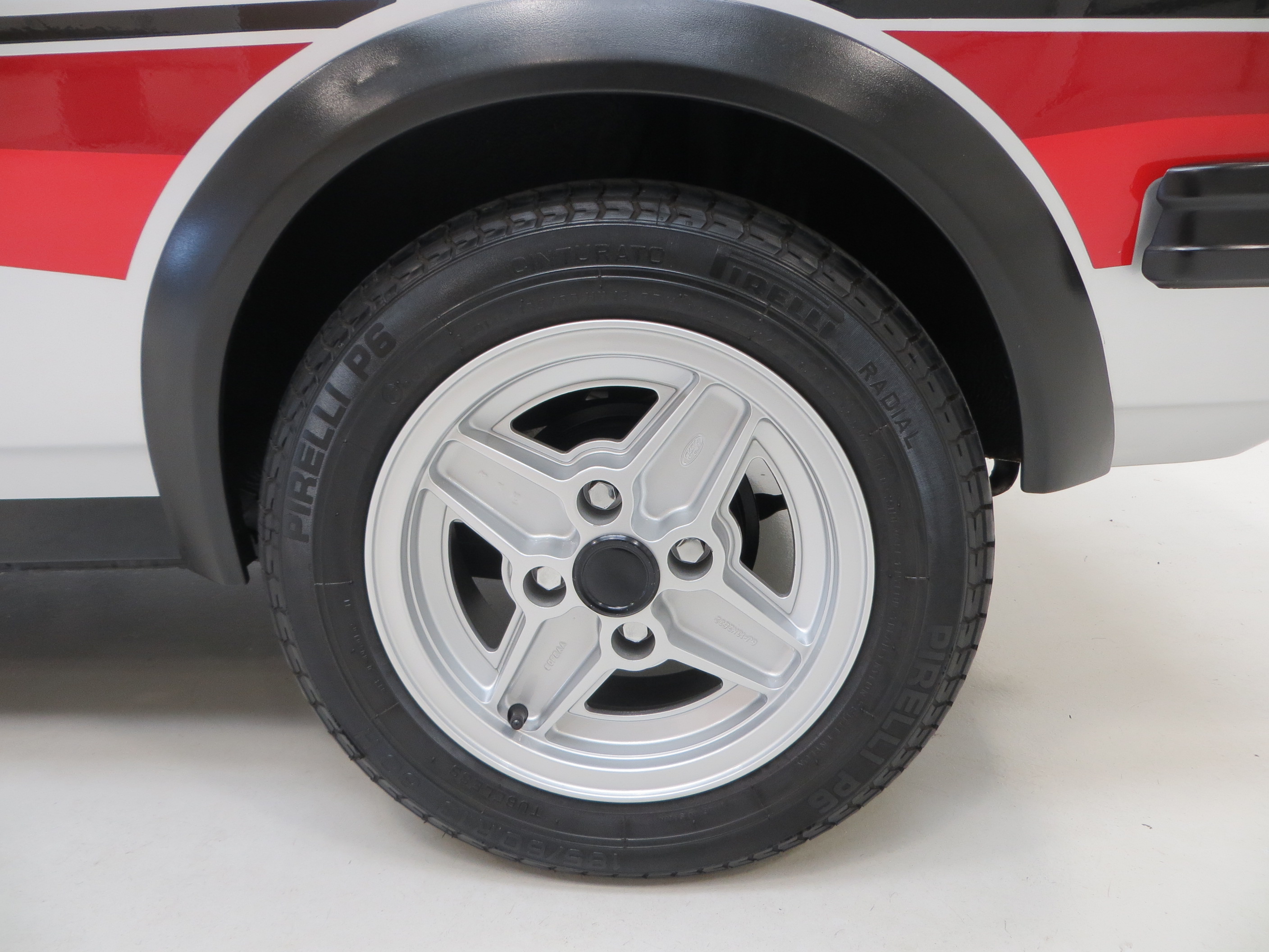 Correct Ford 4-spoke 13 X 6 alloys wheels with the black centre caps are stunning with two tiny marks to the front only. Amazingly, Pirelli P6 185/60 R13 tyres are still fitted including the spare which although have ample tread would be advised to change and keep should the car be regularly used. The dual line servo assisted brakes with 8.7” front discs and 7.0” rear drums bring the car up to a steady halt.
