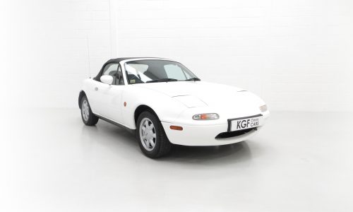 This delightful, early and unmolested UK Mazda MX-5 is finished in rare Crystal White, (Code U C), which looks fantastic contrasting against the black hood and boasts brilliant uniform shine. Only very minor age-related chips and touched in markings can be seen upon scrutiny, not detracting from the overall excellent appearance. A welcome absence of excess applied underseal allows easy inspection of the very good underside condition and all factory stickers remain affixed to the door apertures. All trim, exterior rubbers, glass, lights and badges are in brilliant order, even down to the front nearside Mazda bumper sticker, an item lost on many examples. Supplying Mazda Main Dealer number plates front and rear remain fitted and Mazda MX5 Owners Club stickers are proudly attached to the front screen. The black canvas hood is immaculate with the fully intact factory fitted Perspex rear screen. An instant success from Mazda upon UK launch in 1990, this 1990 built example is one of the very first and will delight the collector and enthusiast alike.