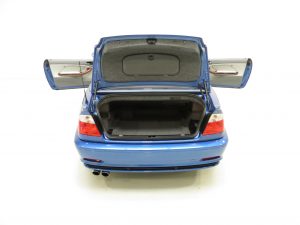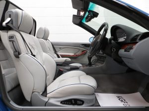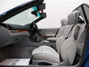 This rare sporty automobile is beautiful at any angle finished in the optional and costly Special paint colour, Estoril Blue, (Code 335). A uniform gloss shine from cossetted enthusiast ownership, low mileage and indoor storage is immediately apparent. Supplying Dealer number plates are fitted and the previous long-term custodian of 13 years has touched in stone chips to the front and rear bumpers. M3 mirrors were dealer fitted as preferred by the owner. The unique Alpina front spoiler, decals and rear badges inform the knowledgeable that this is just one of 161 Convertibles made. All trim, lights and rubber seals are perfect. A car for the connoisseur.