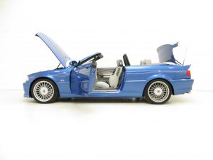 Established as a manufacturer of fine automobiles for the connoisseur, Alpina has thrived since the firm was founded in 1965 by Burkard Bovensiepen. Alpina to this day works closely with BMW and their processes are integrated into BMW’s production lines and so Alpina is recognised by the German Ministry of Transport as an automobile manufacturer. The building of special automobiles for demanding clientele in small numbers ensures exclusivity. The total UK production of the BMW ALPINA B3 S is 224 of which 161 are convertibles. Our example is number 037.