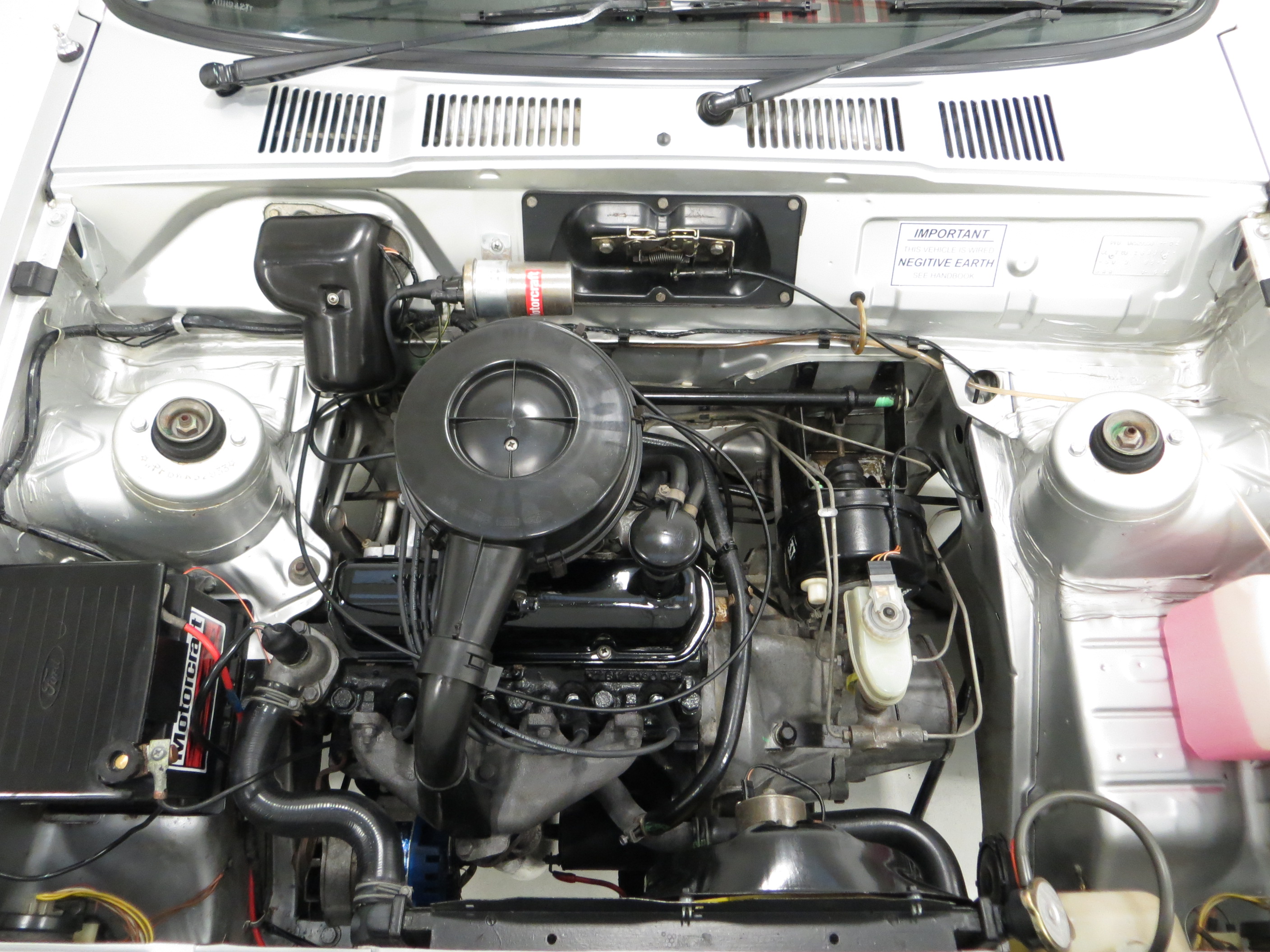 The original steel wheels are in immaculate condition and wear period additions in the form of outer embellishers, bright wheel nut finishers and Ford valve caps, all easily removable if the new owner so wishes. Matching branded 145/80 R12 tyres have masses of tread and no cracks and the original and unused Goodyear Grand Prix X remains in the storage compartment under the boot floor. Standard fitment with the 1100 OHV engine are servo assisted brakes featuring 8.7in front discs and self-adjusting 7.0in rear drums.