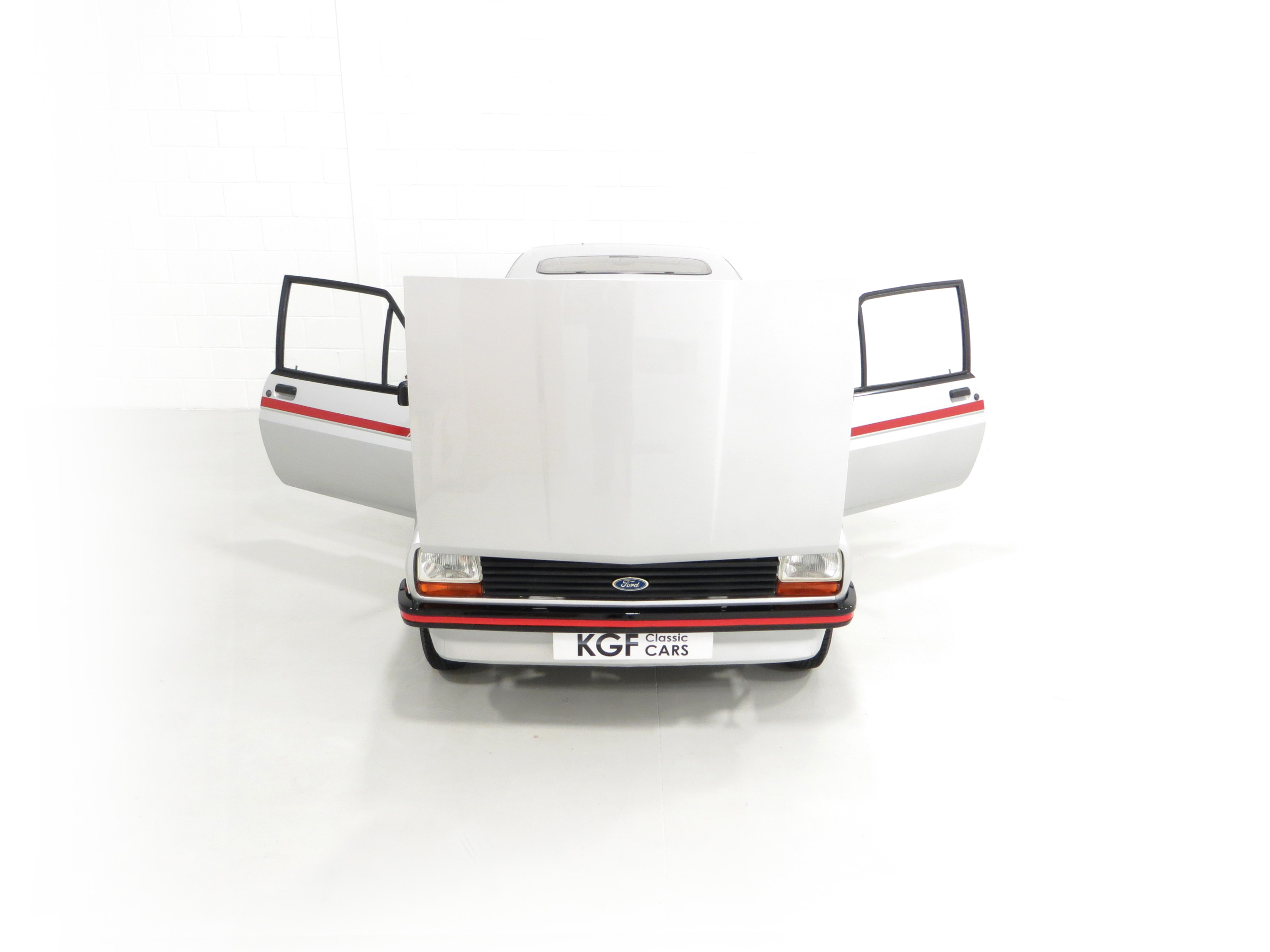 The special edition Ford Fiesta Million was available in just two colours, standard Ford Black and this, Strato Silver Metallic, (Code V6). The car looks superb thanks to the very low 25,502 miles covered and sympathetic historic remedial paintwork carried out to uphold the look. Close scrutiny will reveal a structurally perfect example that has never seen weld repairs and light age-related markings and blemishes throughout. The original decals and badges are preserved and purists will be amazed to see factory fitted glass all round with registration number etching. Incredibly, even the rear wheel arch lip factory date stamps have survived fully visible, almost unheard of for a Mk1 Fiesta! This ultra-rare and historically important Fiesta Million is a really unique find.