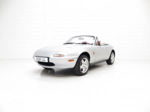 Purchased new by Mr Stephen Dawes on the 28th May 1997 through Mazda UK Ltd on the Special Forces programme, the car was subsequently driven to Belgium where it had its 600 mile inspection at Mazda Main Dealers, Garage Aldo. An accompanying invoice and service stamp act as verification. Both Mr Dawes and the car returned to the UK just four months later whereby the owner continued his international military career having little time to enjoy the Mazda. Despite this, carefully and chronologically filed documentation reveals virtually every MOT from the first in 2000, when the car was three years old to the latest advisory free certificate, enabling the mileage to be warranted. Sold in 2016 to his brother, Mr Richard Dawes, this car has only ever had two family owners. A major service was carried out in September 2016 and all documentation, handbooks and a new car sales brochure remain. A full spare set of keys remain unopened in a polythene bag with leather Mazda key fobs.
