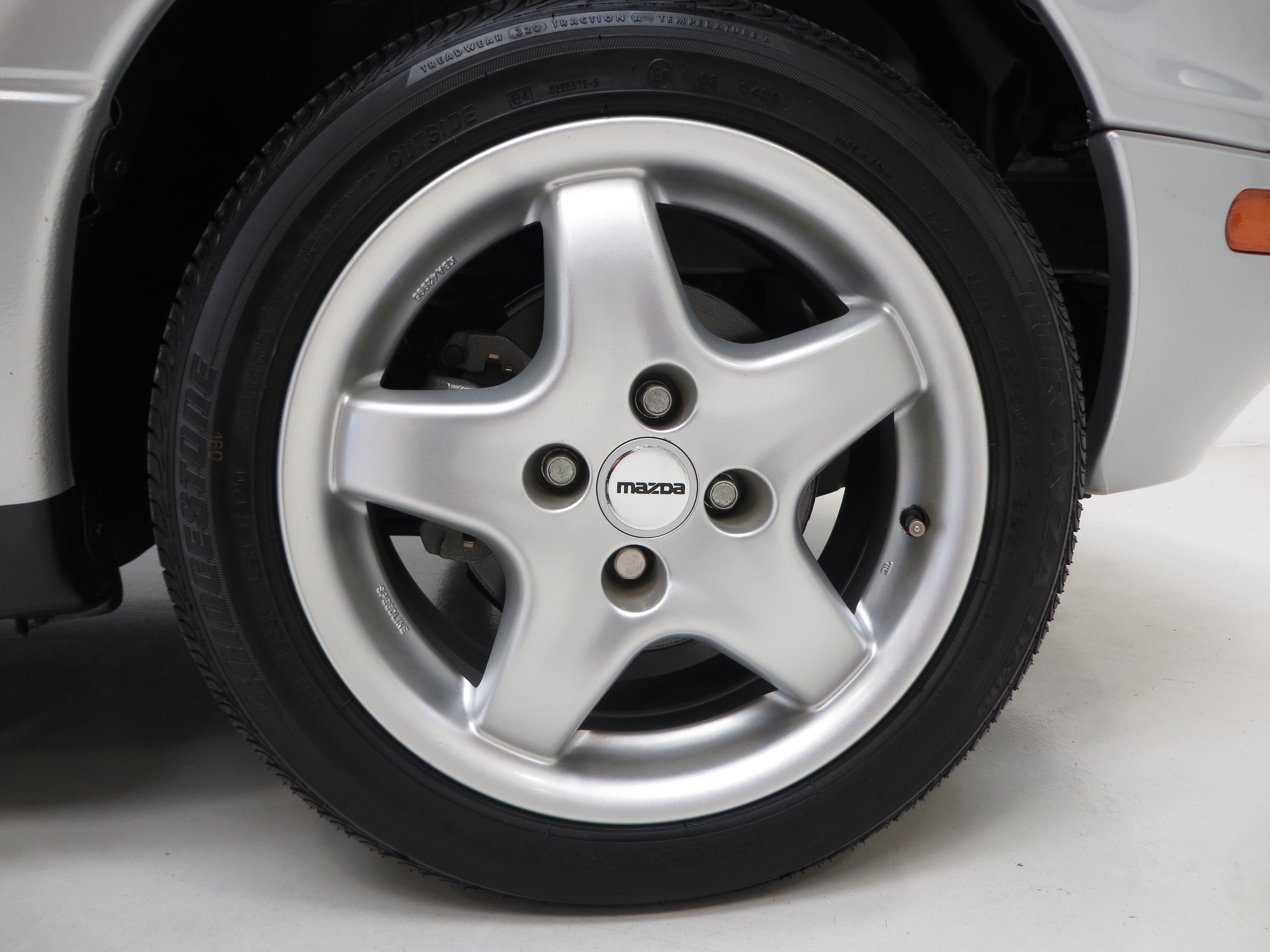 This exceptional Mazda has unique unmarked factory fitted 15inch alloy wheels which are shod in matching Bridgestone 195/50 R15 tyres. The 255mm ventilated discs at the front and solid 251mm at the back install maximum braking confidence. The brake calipers clearly visible through the wide spokes still maintain their silver factory coating.