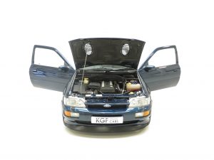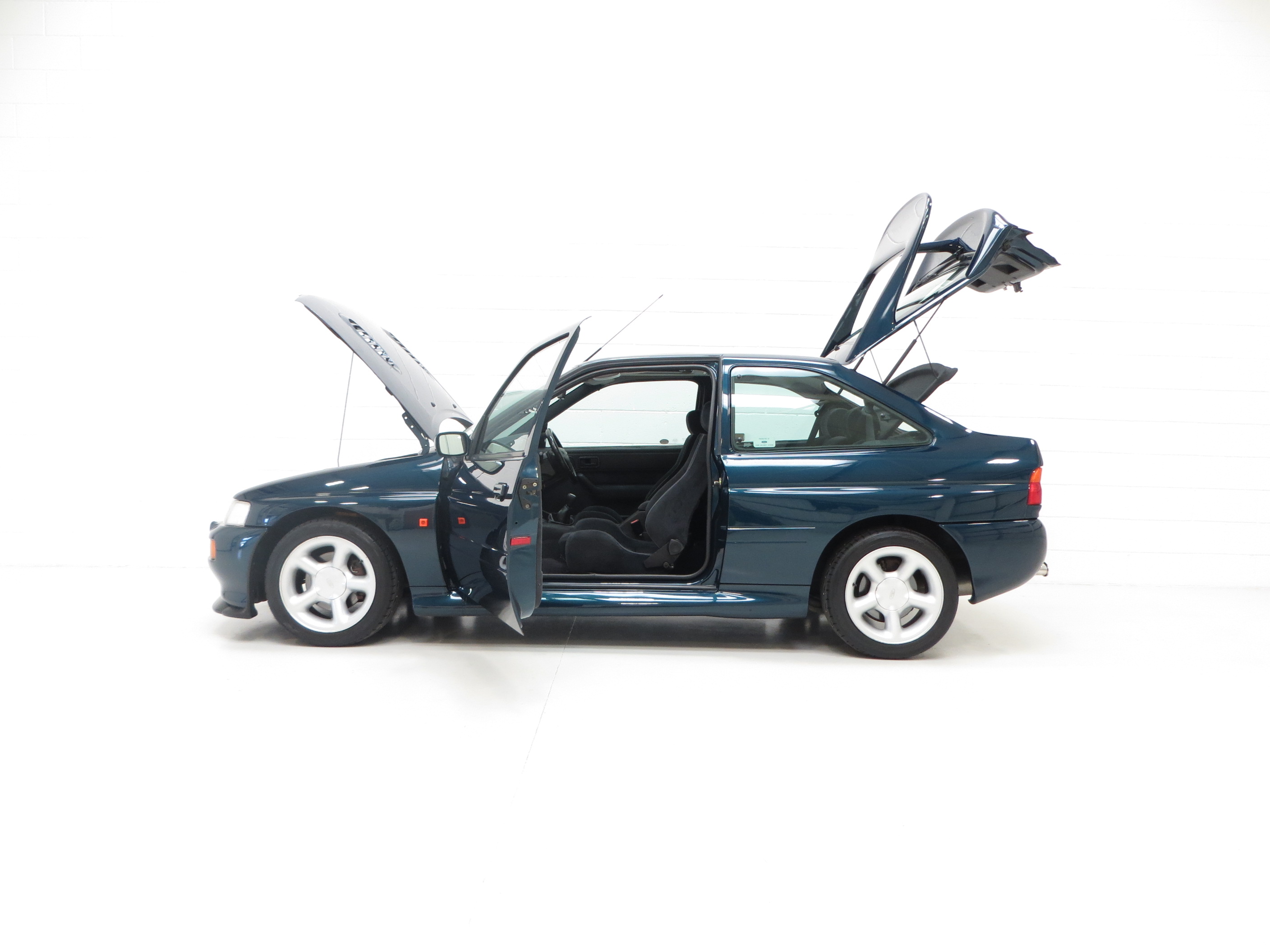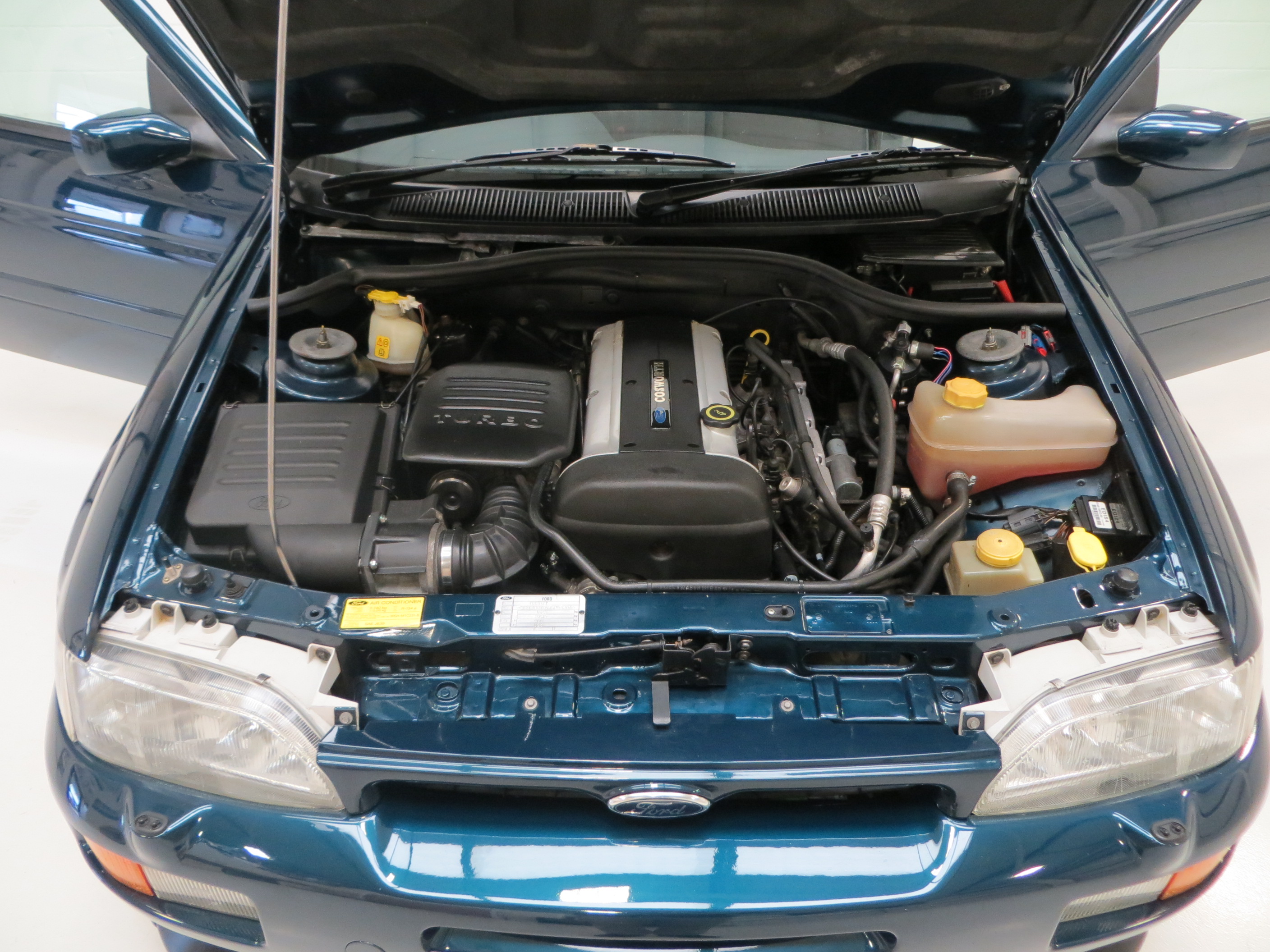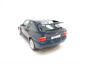 The Ford Escort RS Cosworth was a sports derivative and rally homologation special of the fifth generation Ford Escort. It was designed to qualify as a Group A car for the World Rally Championship. It was available as a road car from 1992-96 in limited numbers from Ford’s Specialist Vehicle Engineering, (SVE), team. It combines the hand-assembled engine expertise of Cosworth and the coach-building crafts of Karmann. In order to accommodate the larger Cosworth engine and transmission Ford developed the car around the chassis and mechanicals of its predecessor, the Sierra Cosworth. A very rare car with only 7,145 examples being produced. (Source Wikipedia, 1995 Edition One RS Brochure and the RS Owners Club).