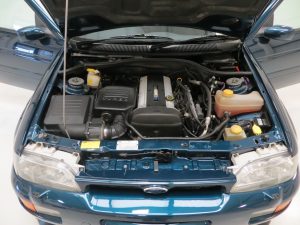 The interior of this Escort Cosworth Lux Edition is absolutely original and just as Ford intended. The Recaro seats finished in the Polaris Grey Hex cloth, (Code LW), are immaculately clean and free from wear. The seat bases and bolsters remain tight and have retained all shape, and even the delicate piping to the seats have avoided the wear commonly suffered in many examples. The cut-pile carpets are clean and unworn. The standard Ford radio/cassette, Model 2007 RDS sound system remains fitted, as does the optional Ford CD player, model 2040. A Bluetooth Parrot system is fitted but not tested. The boot area is pristine and houses the factory fitted space-saver spare wheel and correct jack.
