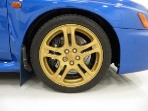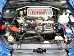The perfectly executed programme of upgrades as per the above specification. The STi interior and steering wheel are as new with no visible wear or discoloration whatsoever. The carpets, door cards and headlining are all pristine. The excitement starts at first turn of the key where the driver’s binnacle sited Perrins boost and exhaust gas temperature gauges burst into life. Neatly and discreetly located is the Tein EDFC controller which allows the driver’s to effortlessly morph from road car into blistering rally machine. All switchgear is perfect and the functions and controls operate seamlessly including the original Subaru stereo system and ice-cold air-conditioning. Lifting the boot lid reveals an immaculate boot carpet as well as the original unused space saver spare wheel and Subaru tool pouch. This really is the ultimate family car exhilaration!