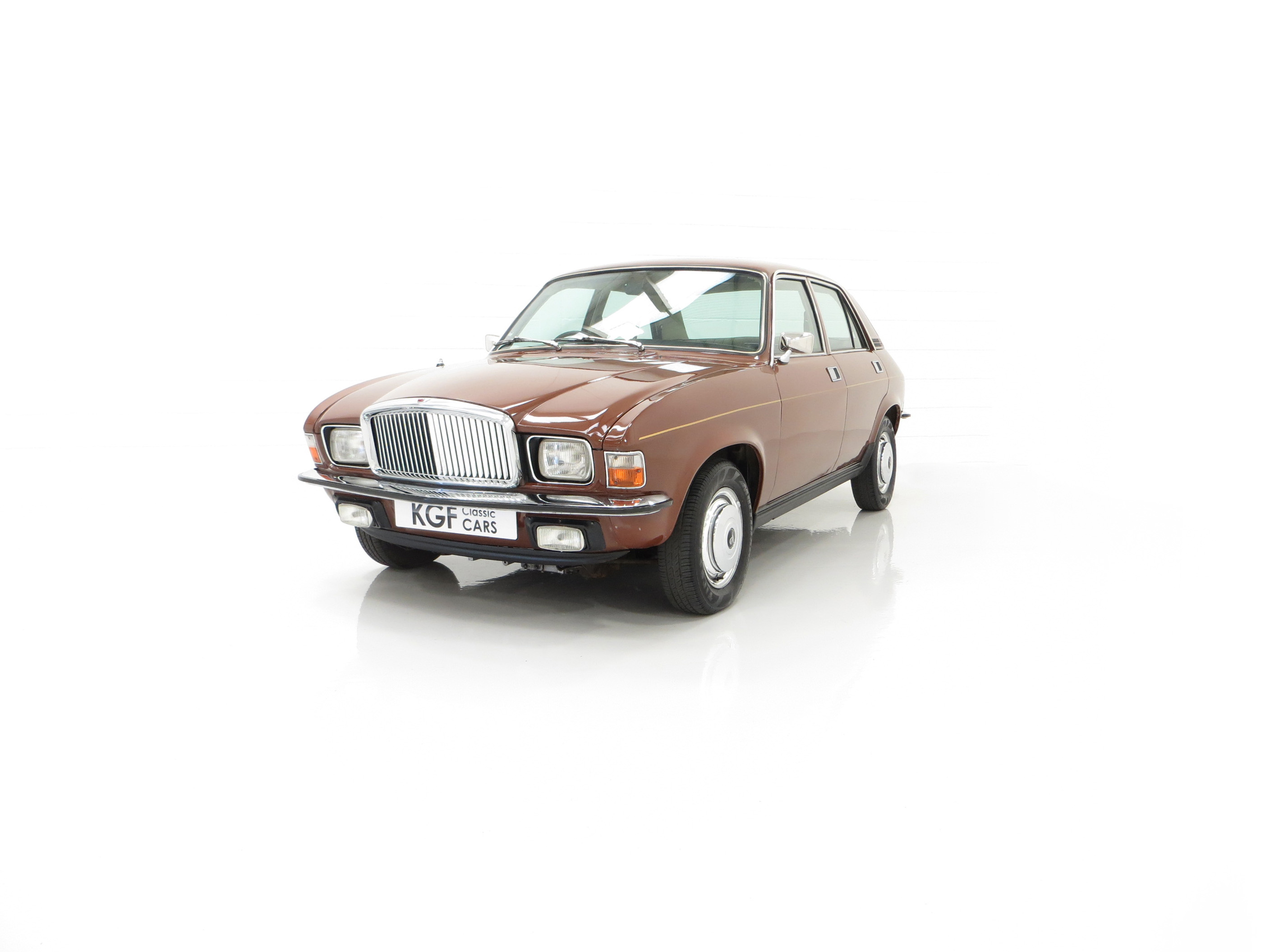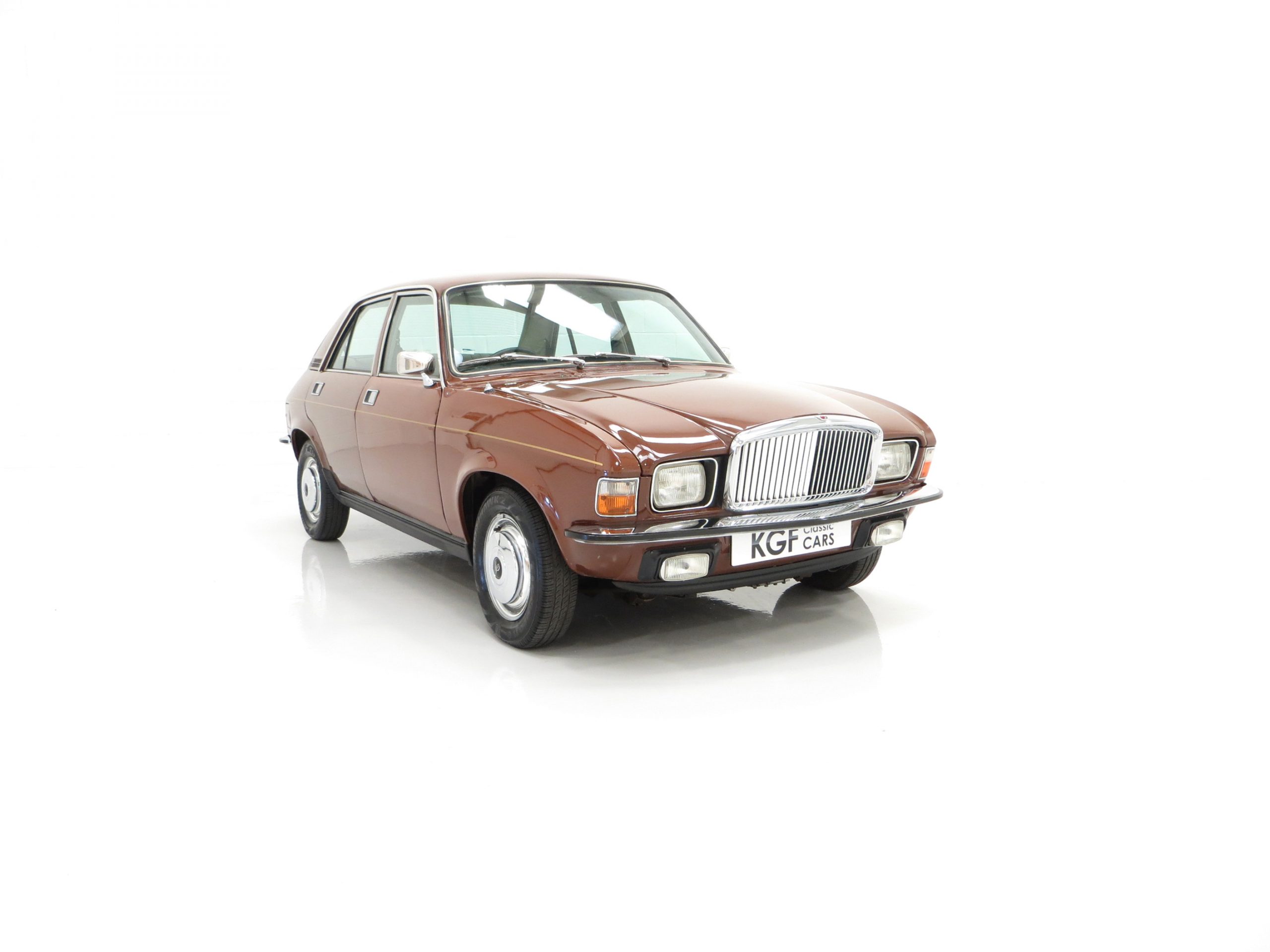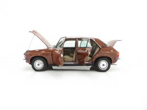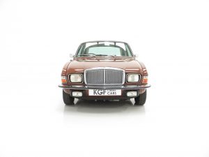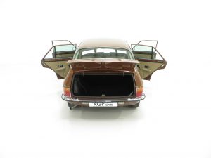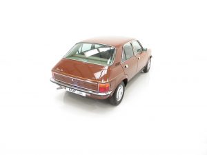 ‘That look of distinction’ as the original sales brochure boasts is certainly the case with this period Russet Brown phenomenally low mileage example! With the traditional Vanden Plas radiator grille and all mirror bright chrome enhancements, it really does look distinctive! The unique trim is in amazing condition and even the front screen still has the Unipart anti-freeze sticker still attached! The supplying dealer rear screen sticker is present along with original number plates. Structural integrity is assured and all wheel-arch apertures, door shuts and underside areas are in remarkable preserved condition. Due to some storage damage there is a tiny rub to one bumper corner and some panels have been painted. The gold coachline and all badges are present. An almost inconceivable rare survivor against unfavourable odds, very special.