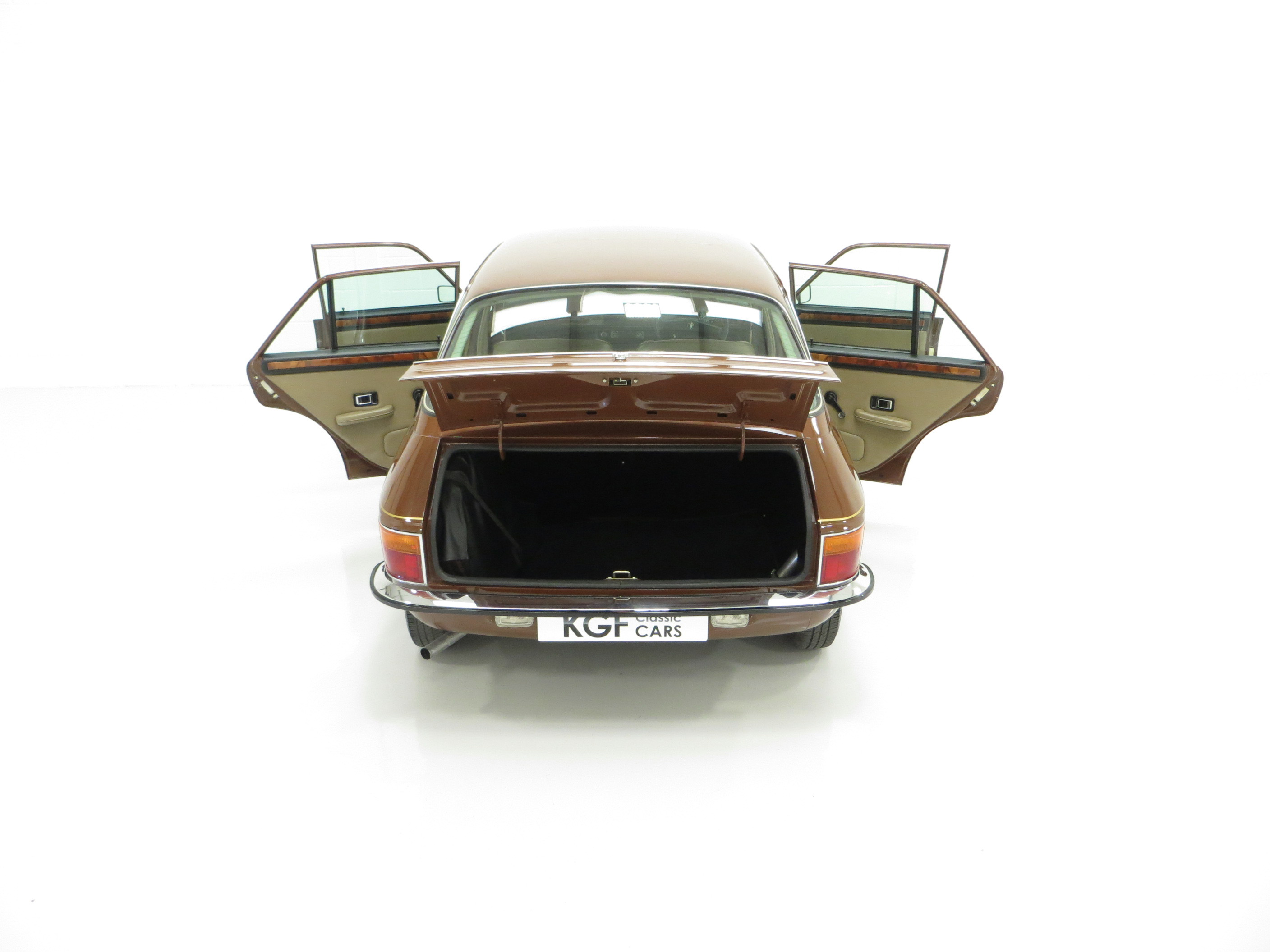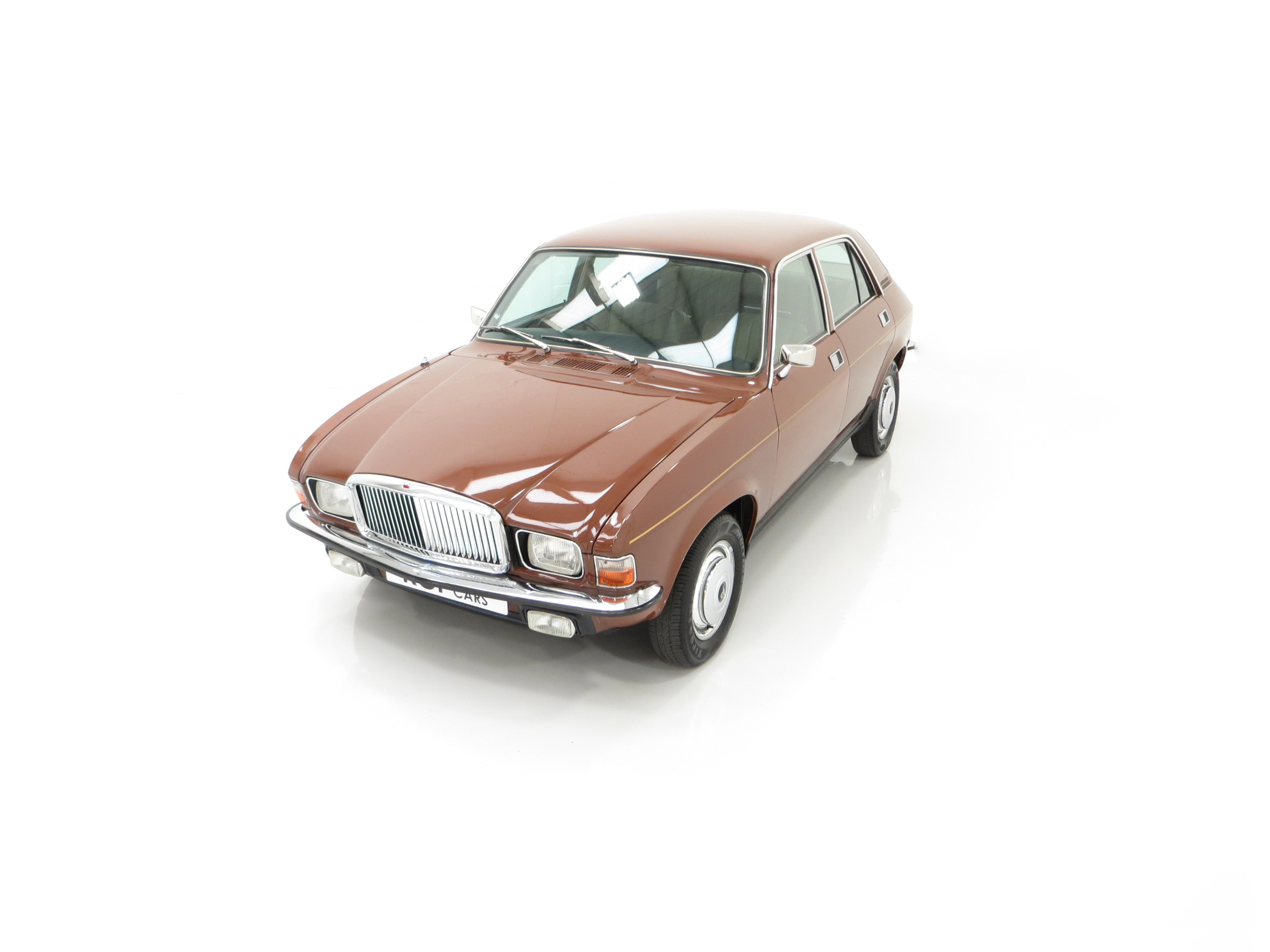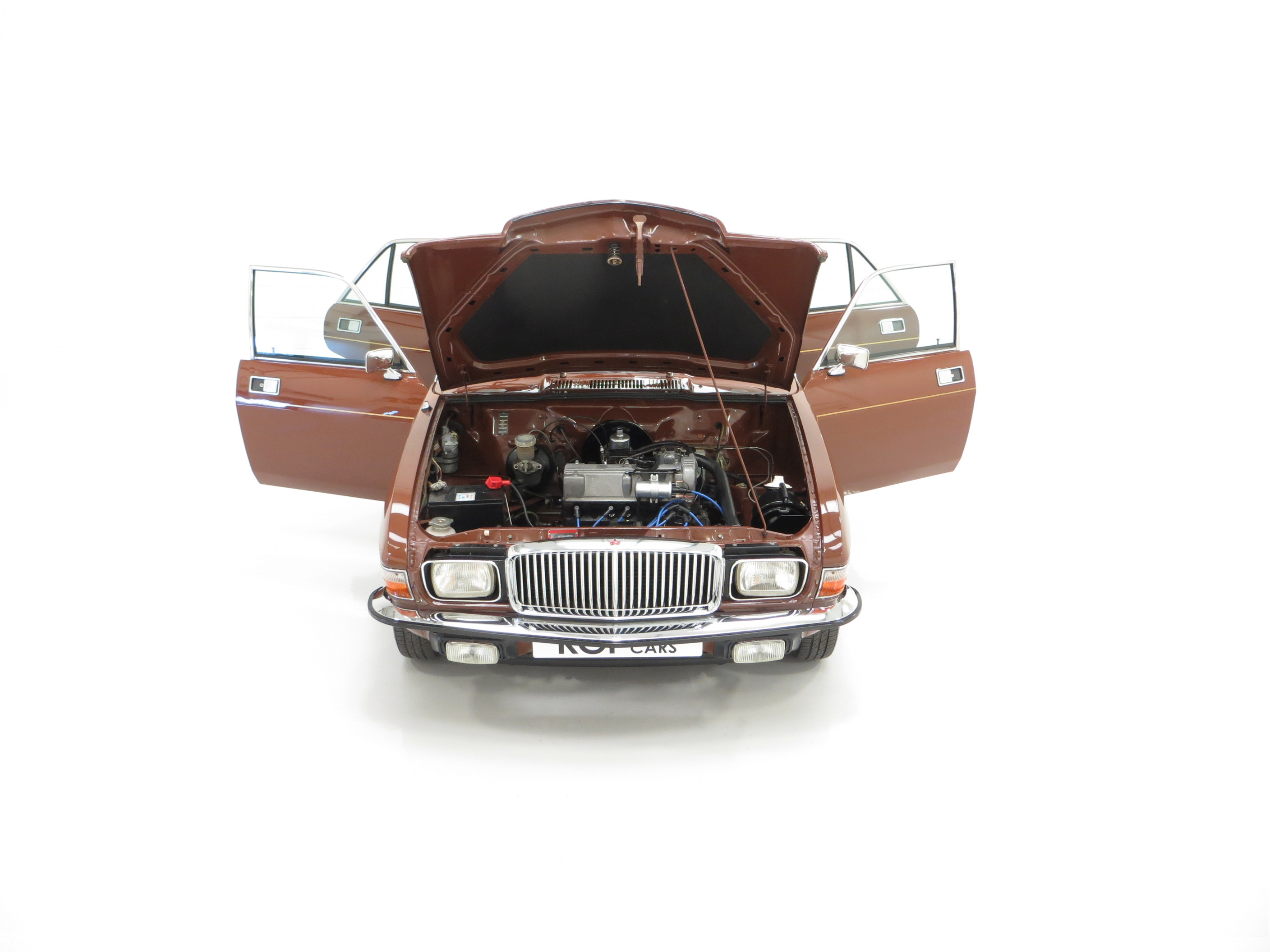 ‘That look of distinction’ as the original sales brochure boasts is certainly the case with this period Russet Brown phenomenally low mileage example! With the traditional Vanden Plas radiator grille and all mirror bright chrome enhancements, it really does look distinctive! The unique trim is in amazing condition and even the front screen still has the Unipart anti-freeze sticker still attached! The supplying dealer rear screen sticker is present along with original number plates. Structural integrity is assured and all wheel-arch apertures, door shuts and underside areas are in remarkable preserved condition. Due to some storage damage there is a tiny rub to one bumper corner and some panels have been painted. The gold coachline and all badges are present. An almost inconceivable rare survivor against unfavourable odds, very special.