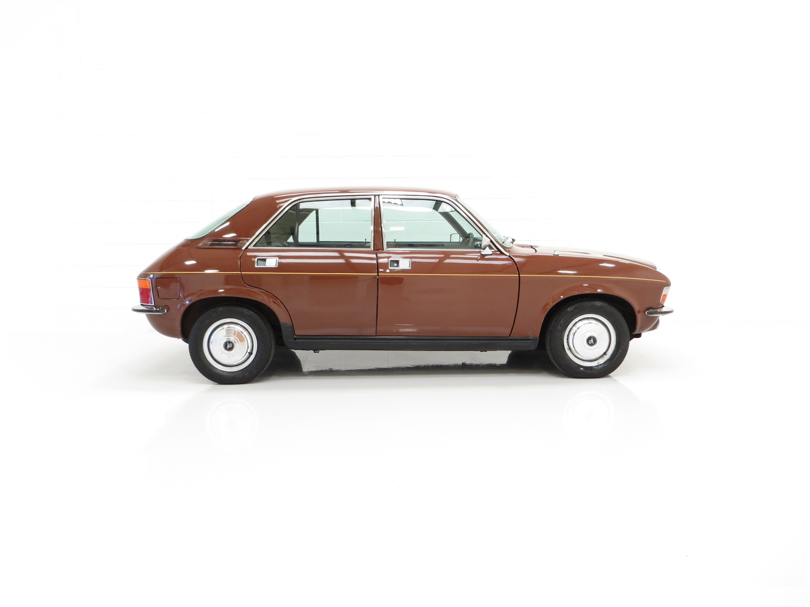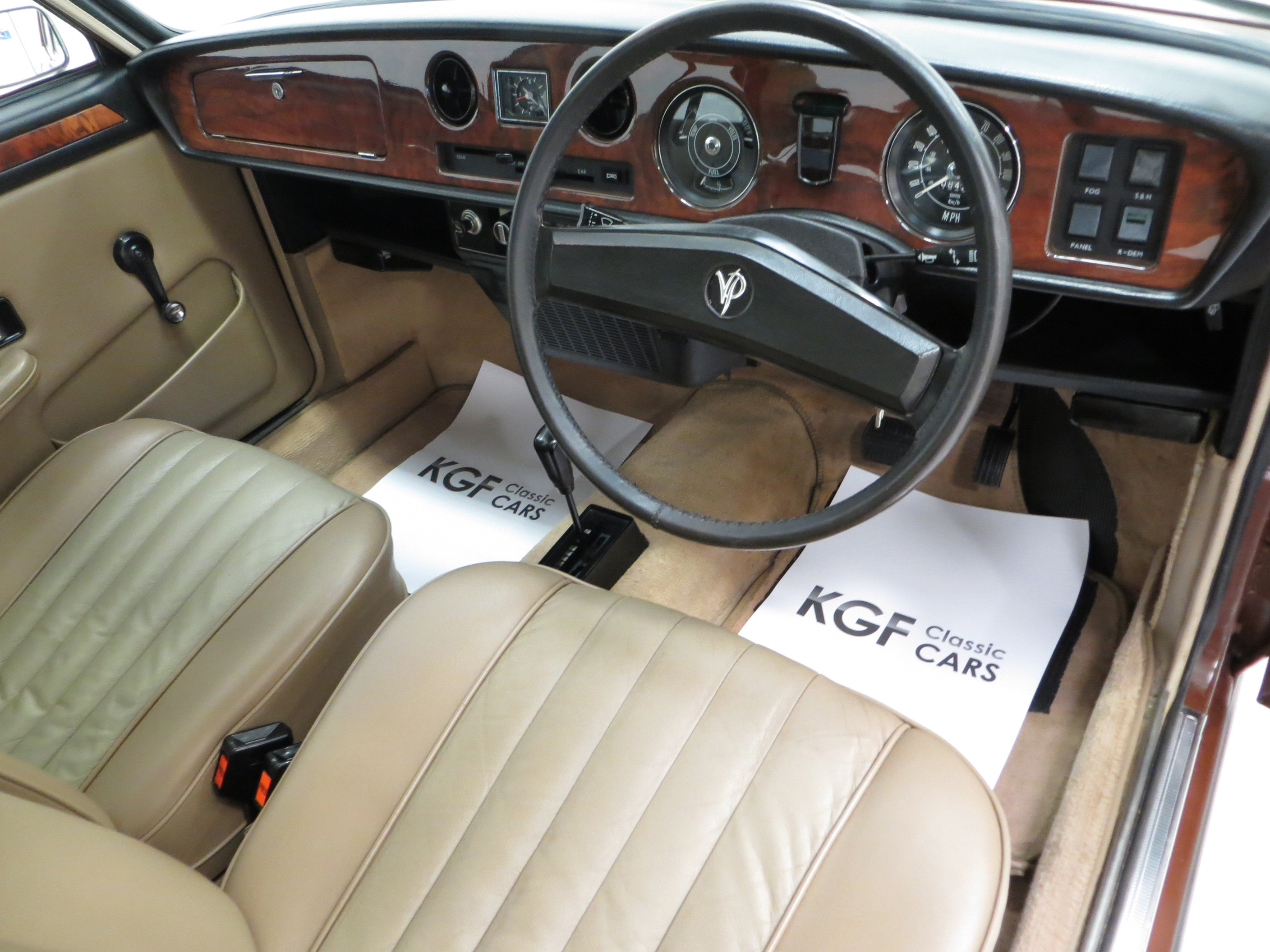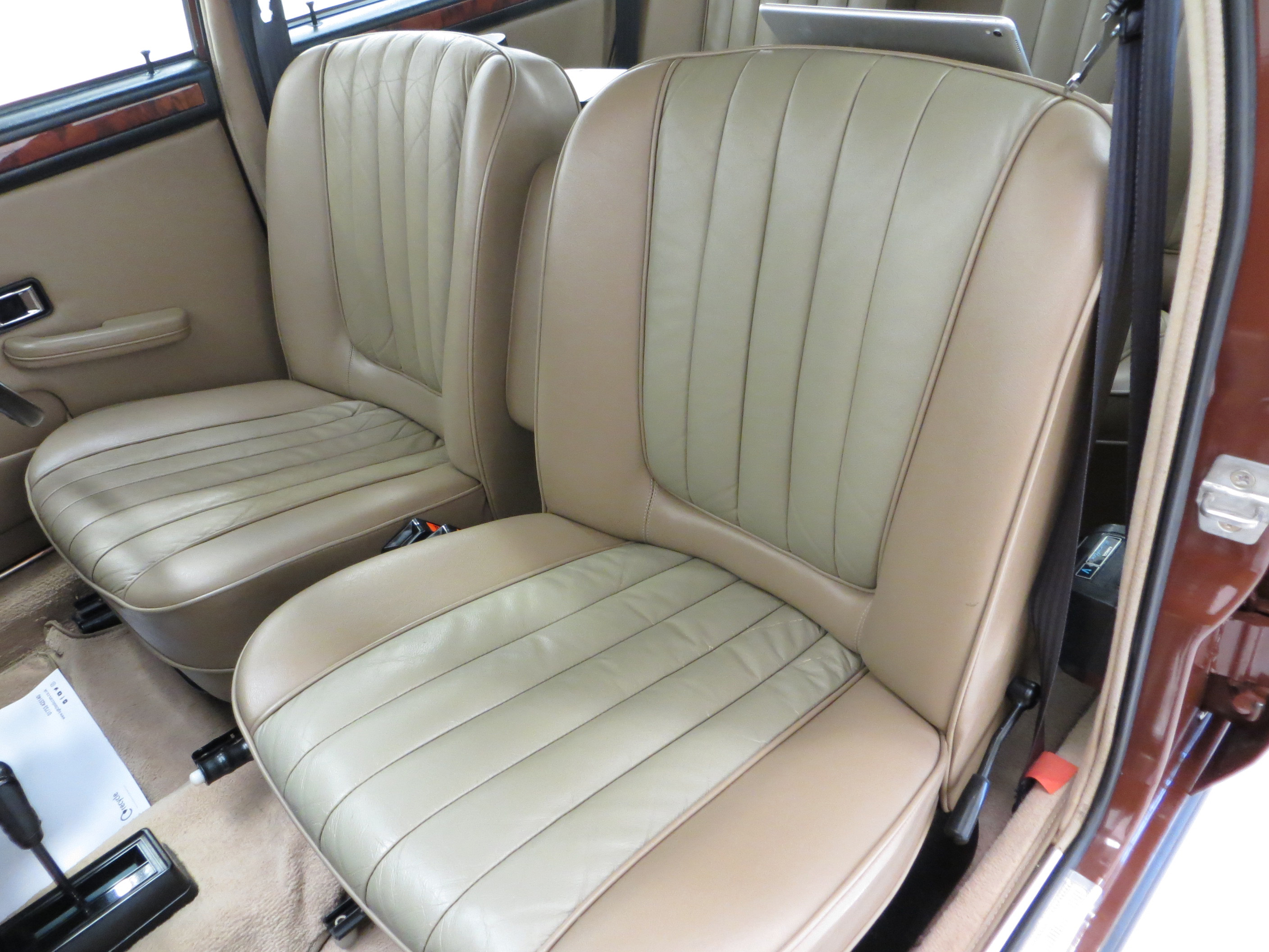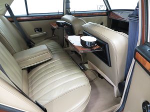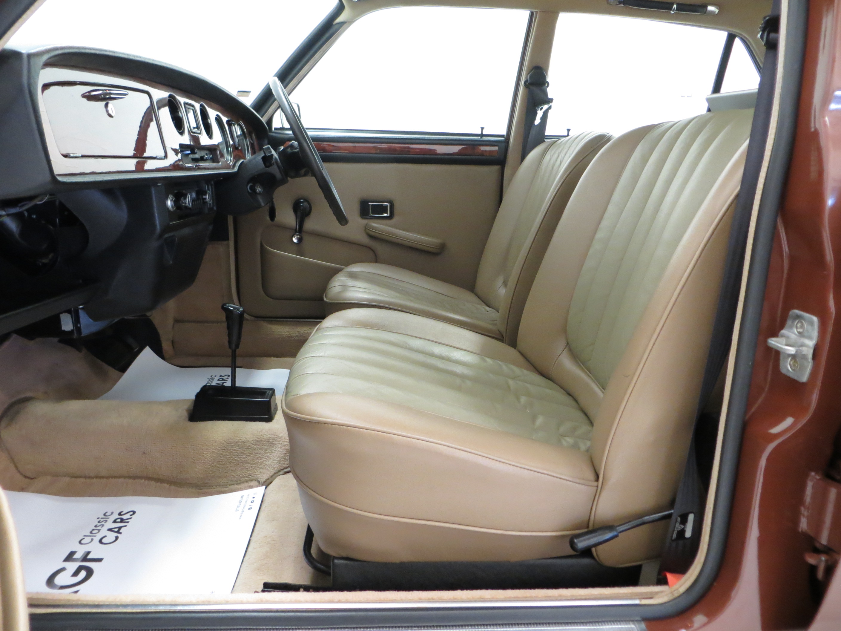 All steel unitary construction, underbody protection, wax injected body sills, sill protectors, twin door mirrors, tinted window glass, flush fitting door handles, anti-burst door locks, trimmed parcel shelf, reclining front seats with armrest, full-width veneered walnut fascia, face-level fresh air vents, twin sun-visors with vanity mirror on passenger, front and rear ashtrays, coat hooks, picnic tables, cigar lighter, lockable glovebox, electric washers, two-speed wipers, flick wipe, twin horns, hazard warning lamps, twin fog lamps, three courtesy lights, boot light. Optional Extras; Automatic gearbox, Radiomobile.