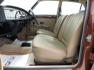 Powered by the British Leyland ‘E’ Series 1485cc overhead camshaft engine fitted with a single SU HS6 carburettor producing 68bhp at 5500rpm, the mechanics are simple and cost effective to run and maintain. Electronic ignition has been added. All stickers, plates and stampings are clearly visible, even the Hydragas sticker on the sphere is still attached! A very clean and presentable engine bay. The optional 4-speed AP automatic gearbox suits the car perfectly with relaxed, smooth changes. Wonderful.