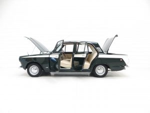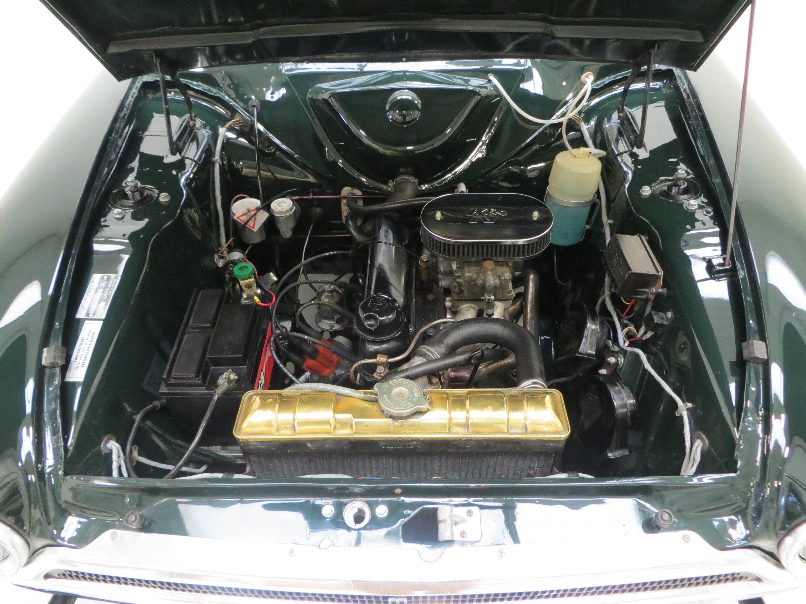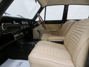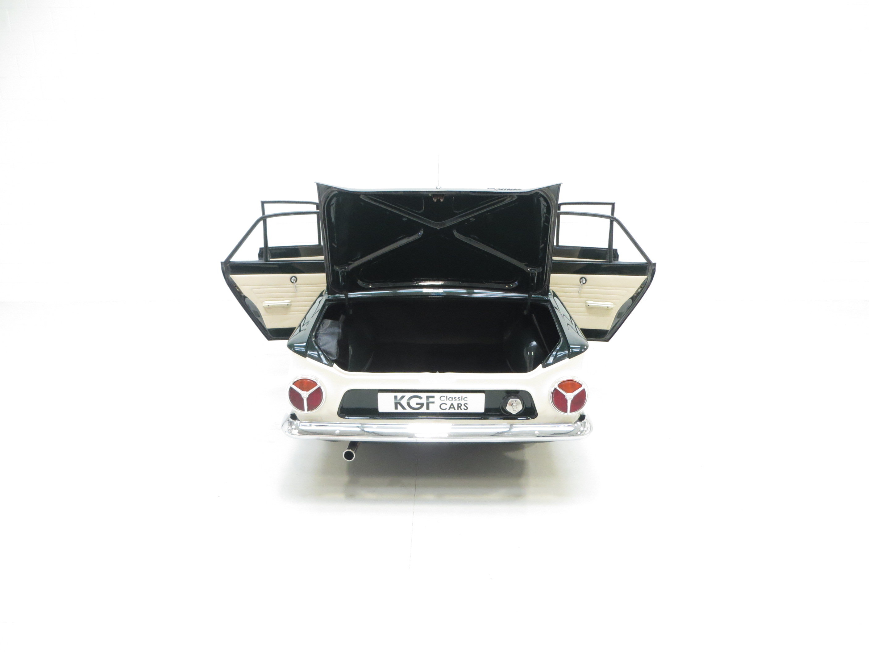 The spacious interior of this classic Cortina is remarkable, the foam padded front bucket seats, rear bench seat and matching door cards are finished in a luxurious cream leather and remain in a near perfect condition. The original washable headlining and matching twin sunvisors are in great condition just showing very slight discolouration, with the original Fir Green carpet finishing off this delightful interior. All gauges and controls housed in a safety padded instrument panel are clear and fully operational and a period Motorola radio remains in situ. The Cortina aeroflow heating and ventilation system capable of changing the air in the car every 40 seconds, even with the windows closed, is working perfectly and reminds the driver how special this car is. The stylish Speedwell three spoke sports steering wheel is in fine order and adds to a fantastic Cortina interior, simply brilliant.