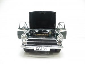 All steel integral construction, safety glass all round, zero torque locks, air extraction vents, childproof locks on rear doors, wing mounted chrome mirrors, bright metal exterior ornamentation, halogen headlamps, single tone horn, painted fascia and upper door capping’s, padded dashtop, aluminium scuff plates, aeroflow heating and ventilation system, twin sunvisors, cigar lighter, oil pressure, water temperature, amp, fuel gauges, tachometer, Speedwell 3-spoke wooden steering wheel.