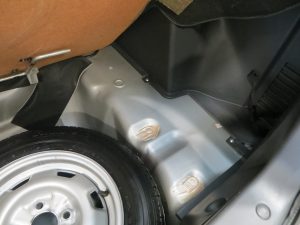 The standard wheels feature the original full wheel covers which are virtually unmarked, and all wheels including the spare remain shod in the factory Dunlop SP 7 155SR13 tyres. Whilst the tyres are visually in excellent order, renewal prior to regular use may be a wise safety consideration on the grounds of age. The spare wheel is unused and the tyre even has the stickers affixed to the tread. Alongside the spare wheel is the complete Nissan tool pouch. The braking system incorporates discs to the front and offers reliable straight line stopping power.