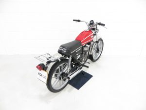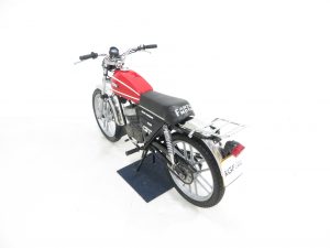 The Fantic motor Minarelli two-stroke 49cc air cooled engine is quoted to produced 7.2 bhp @8000rpm and capable of speeds up to 60.5mph making this no normal moped. All components are fully detailed to show standard and the original Dell’Orto carburettor remains fitted. The bike has a four speed foot change transmission with a chain drive.