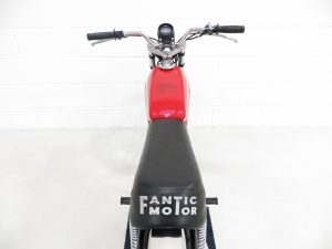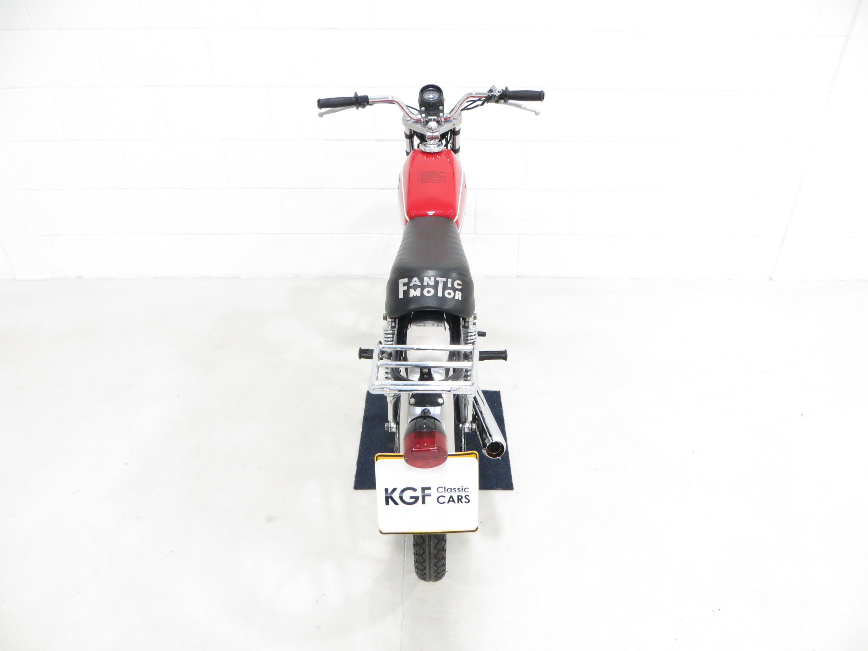 Stainless steel front and rear mudguards, rubber front mudguard extender, chrome rear view mirrors, Ceriani rear shock absorbers, CEV headlamp and speedometer, rear tail light with reflector, rear luggage rack, electromagnetic horn, engine cut-out button, fuel valve, original Fantic motor embossed seat, chrome exhaust.