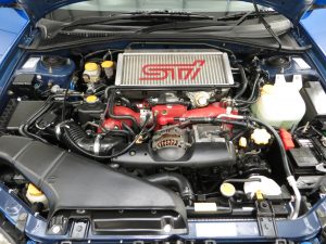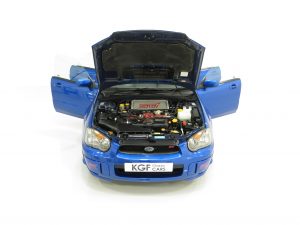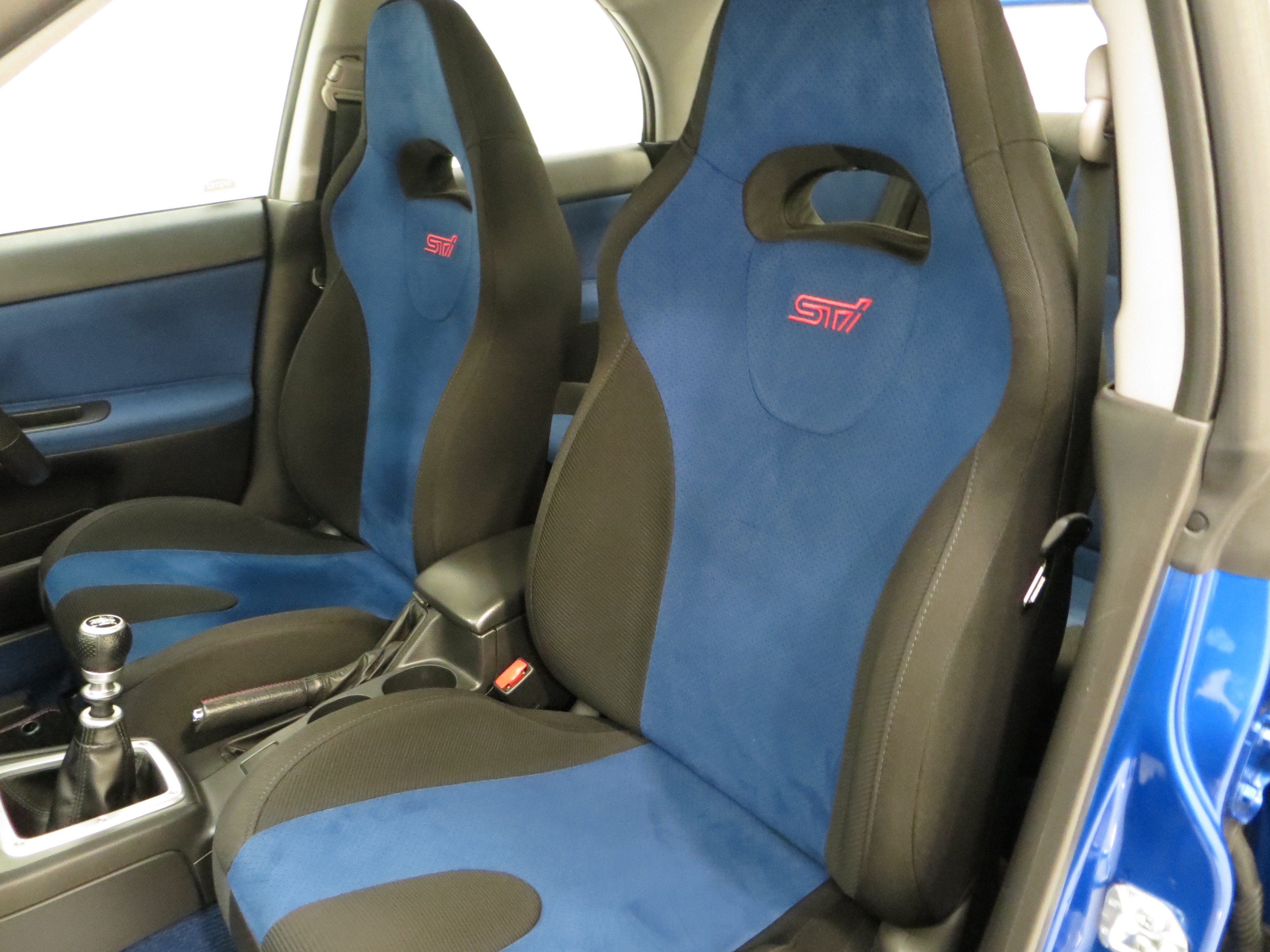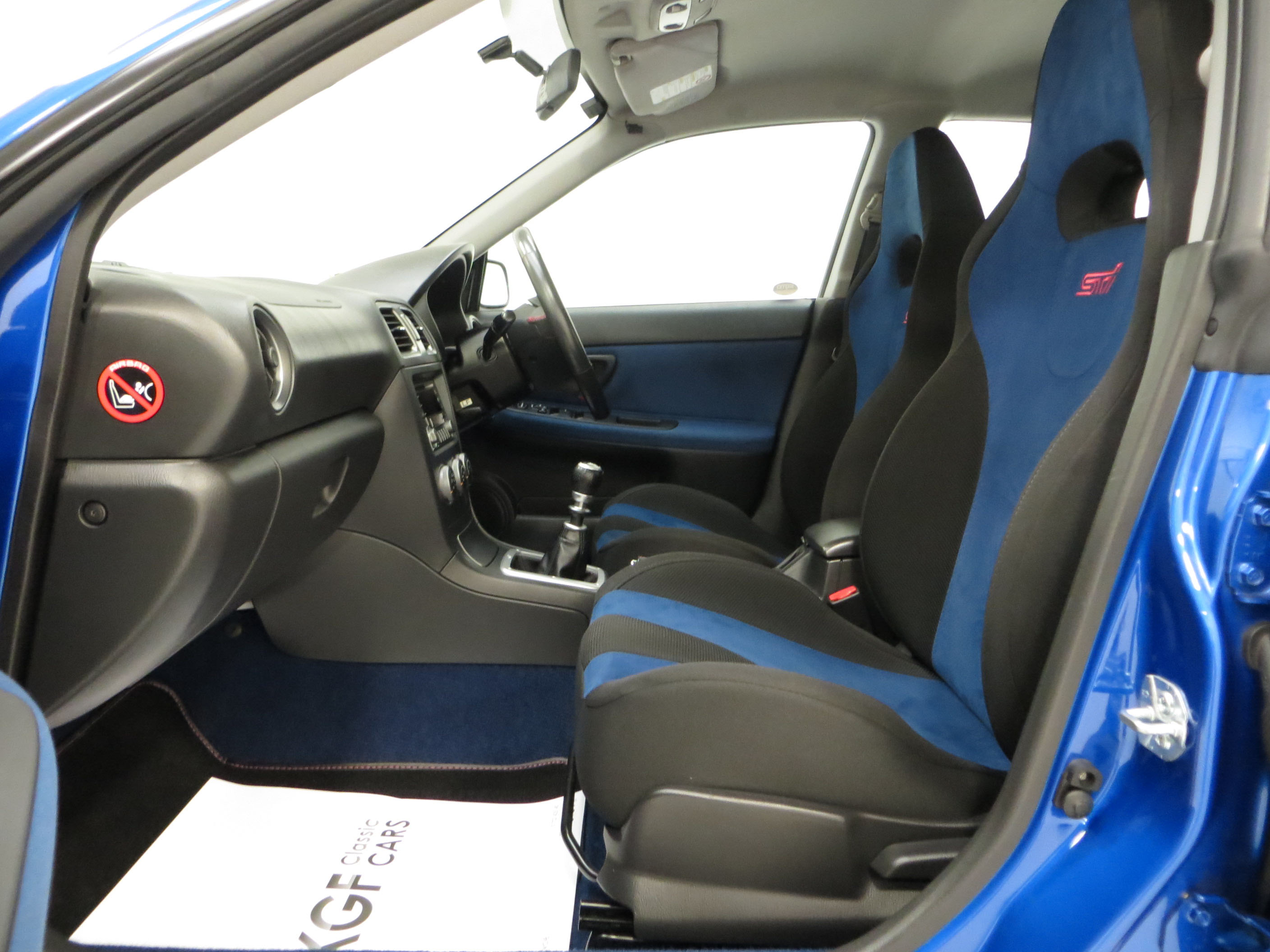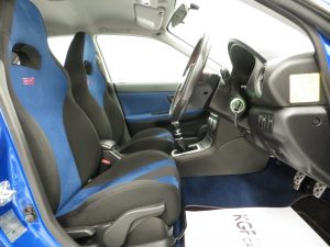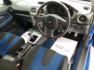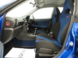 The highly tuneable Subaru Boxer Horizontally-Opposed 2.0 litre turbocharged engine is the ultimate incarnation and highly regarded producing 265bhp and 343 Nm of torque. A top speed of 152 mph and 0-62 mph in 5.5 seconds is quoted, still impressive pitched against today’s rivals. Opening the aluminium bonnet reveals the STI branded turbo intercooler in an immaculate engine bay with all factory plates, label and stickers intact and Subaru stampings to the inner wings. The short-throw 6-speed gearbox is sweet moving up and down the gears with precision making the most of the unmistakable Subaru boxer engine soundtrack!