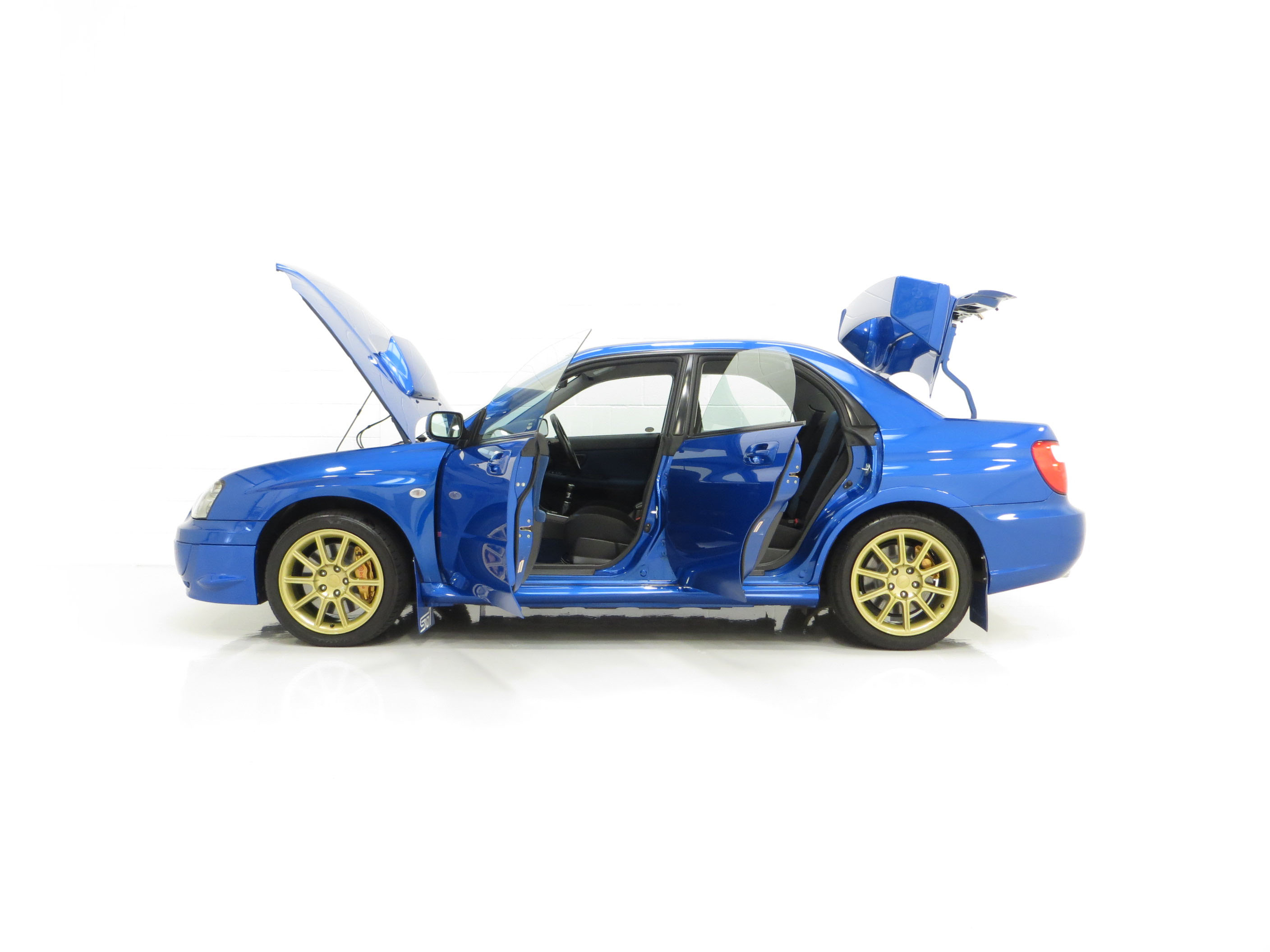 This incredible Subaru Impreza WRX STi Type UK was first registered brand new in the UK on the 8th July 2005 having been ordered from Subaru Distributor, Liaco Ltd in Malta. The first owner, Mr Moffat cherished the car and on the first main dealer service decided to have fitted the Prodrive Blue mud flaps and also at this time requested the dealer to carry out the cavity wax service to the undercarriage, all documented with invoices. Used sparingly until 2011 with some MOT certificates and main dealer service invoices, the vehicle was then put into storage garaged with just over 11,000 miles. In 2018, after seven years in hibernation, it was booked into Subaru main dealer, Maple Leaf Garage Ltd for a full service with 11,355 miles and a cam belt was also carried out in the same year. Owned subsequently by avid Subaru enthusiasts, the last being Mr Walker who only sold the car to buy an even lower mileage example with just 3,000 miles!