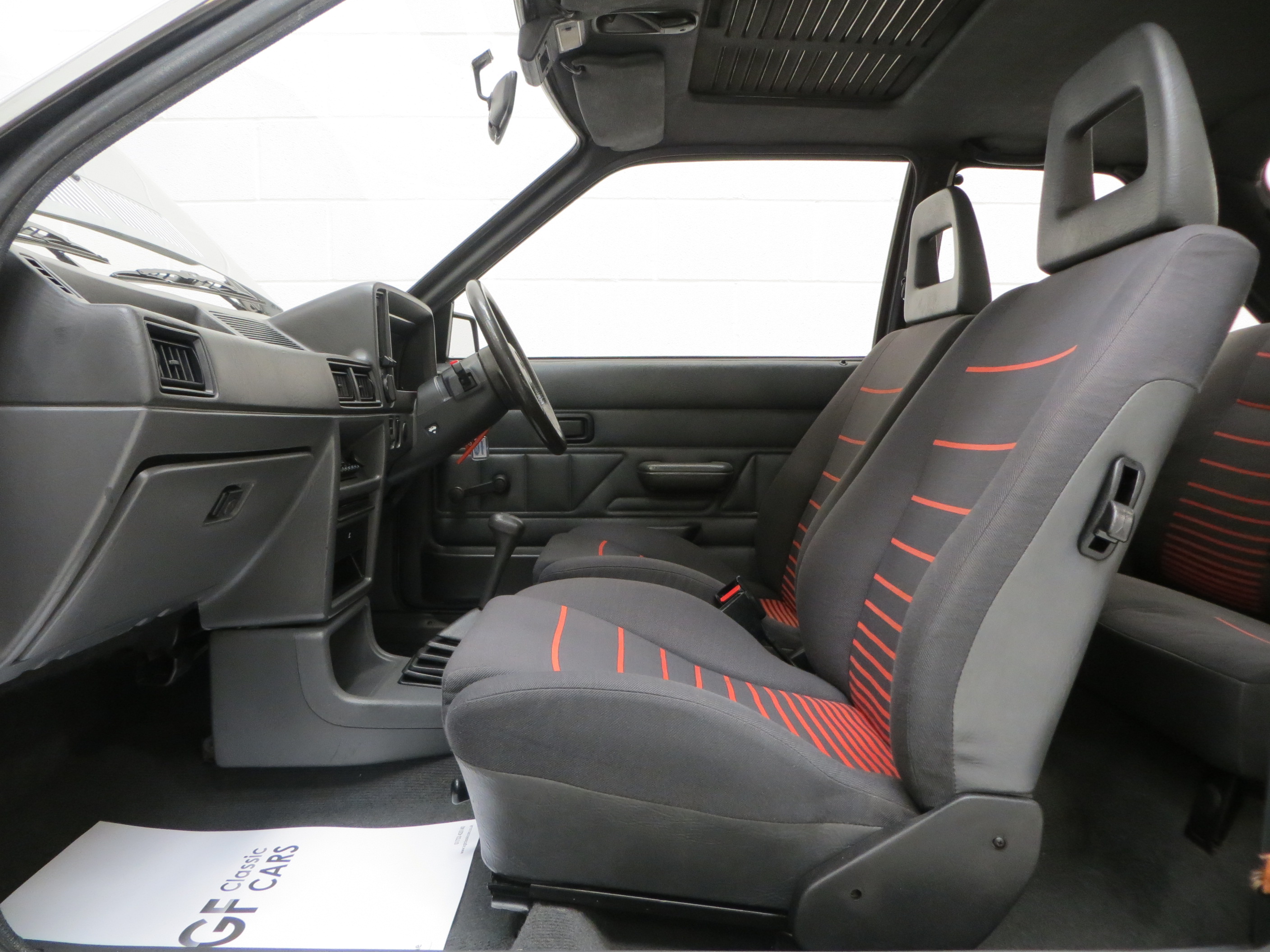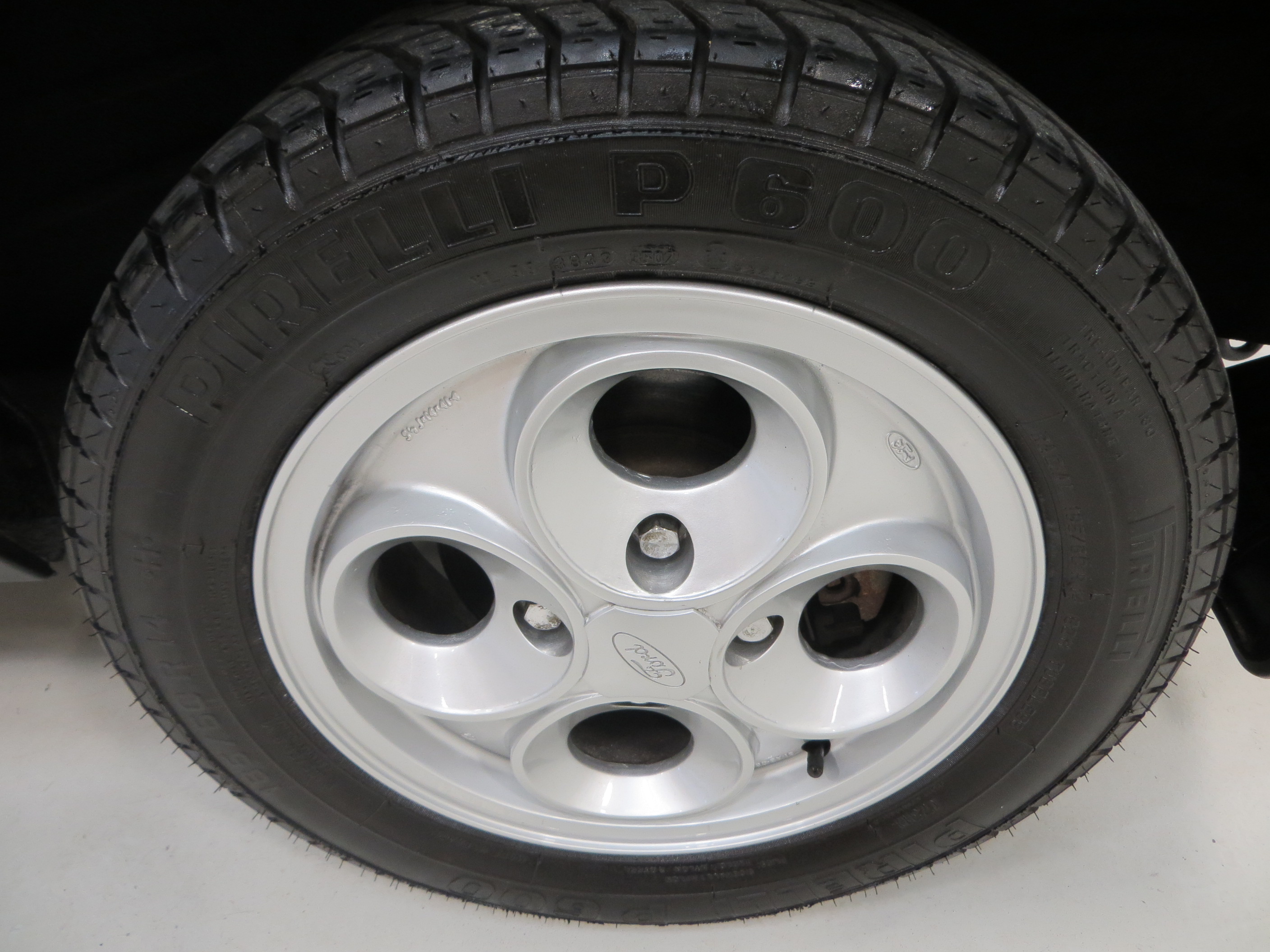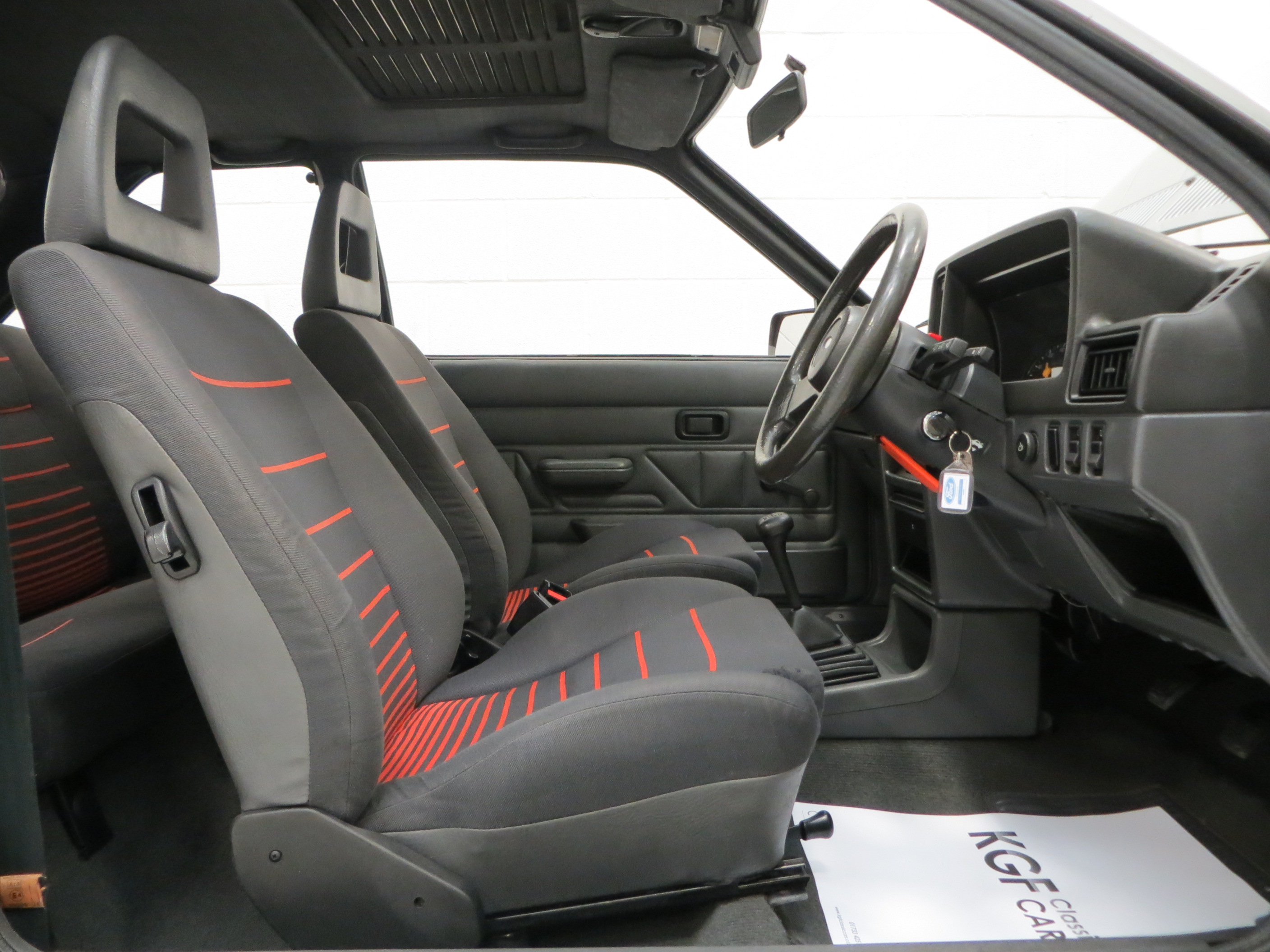 Five cloverleaf deep sculptured light cast alloy wheels are in fantastic order and fitted with Pirelli P6000 185/60 R14 tyres showing masses of tread. The boot area houses the spare wheel alongside the factory supplied jack and brace, and the original parcel shelf is straight and uncut with correct rubber hangers. The servo assisted brakes with 9.4” ventilated discs up front stop the car well.