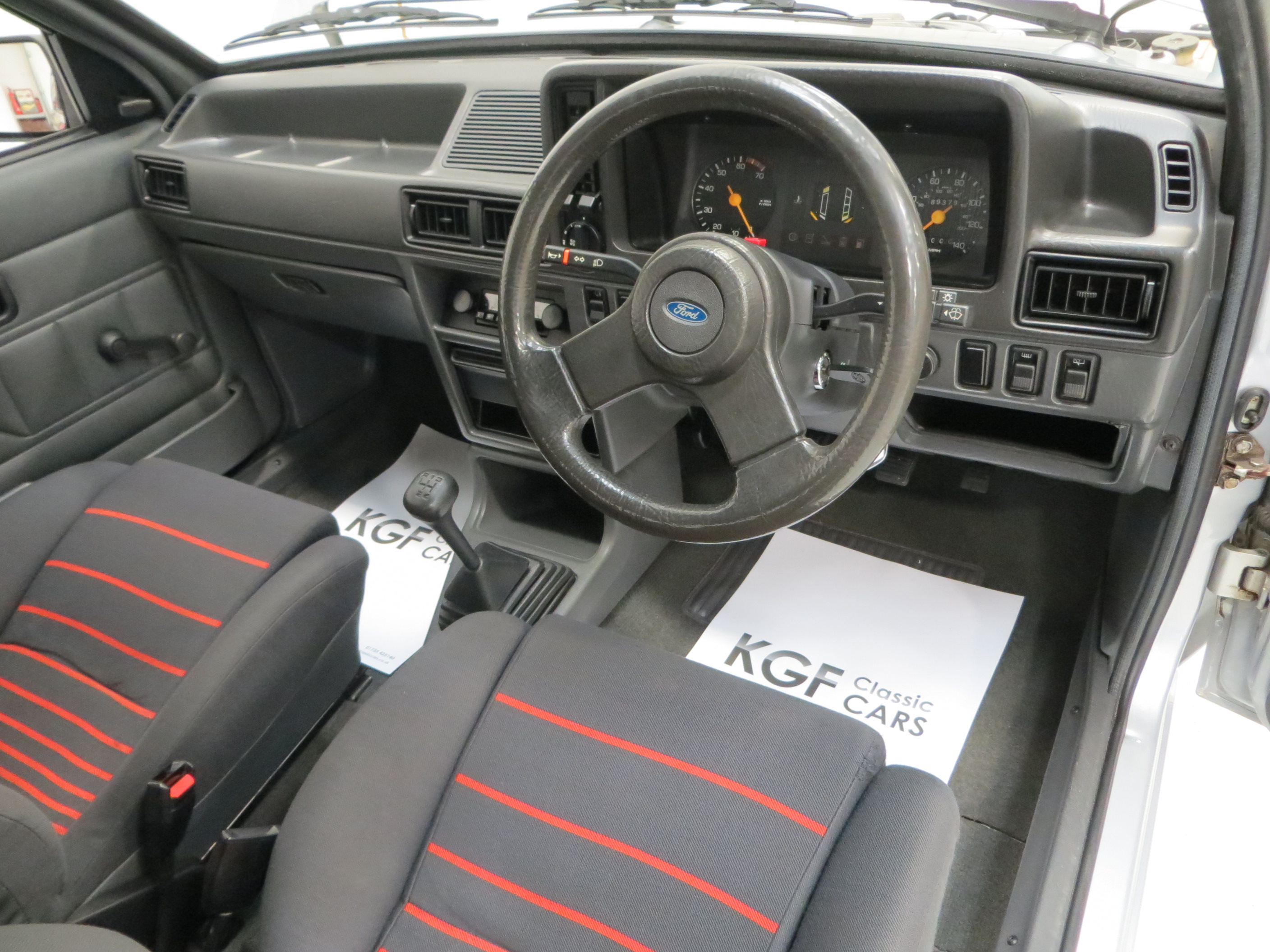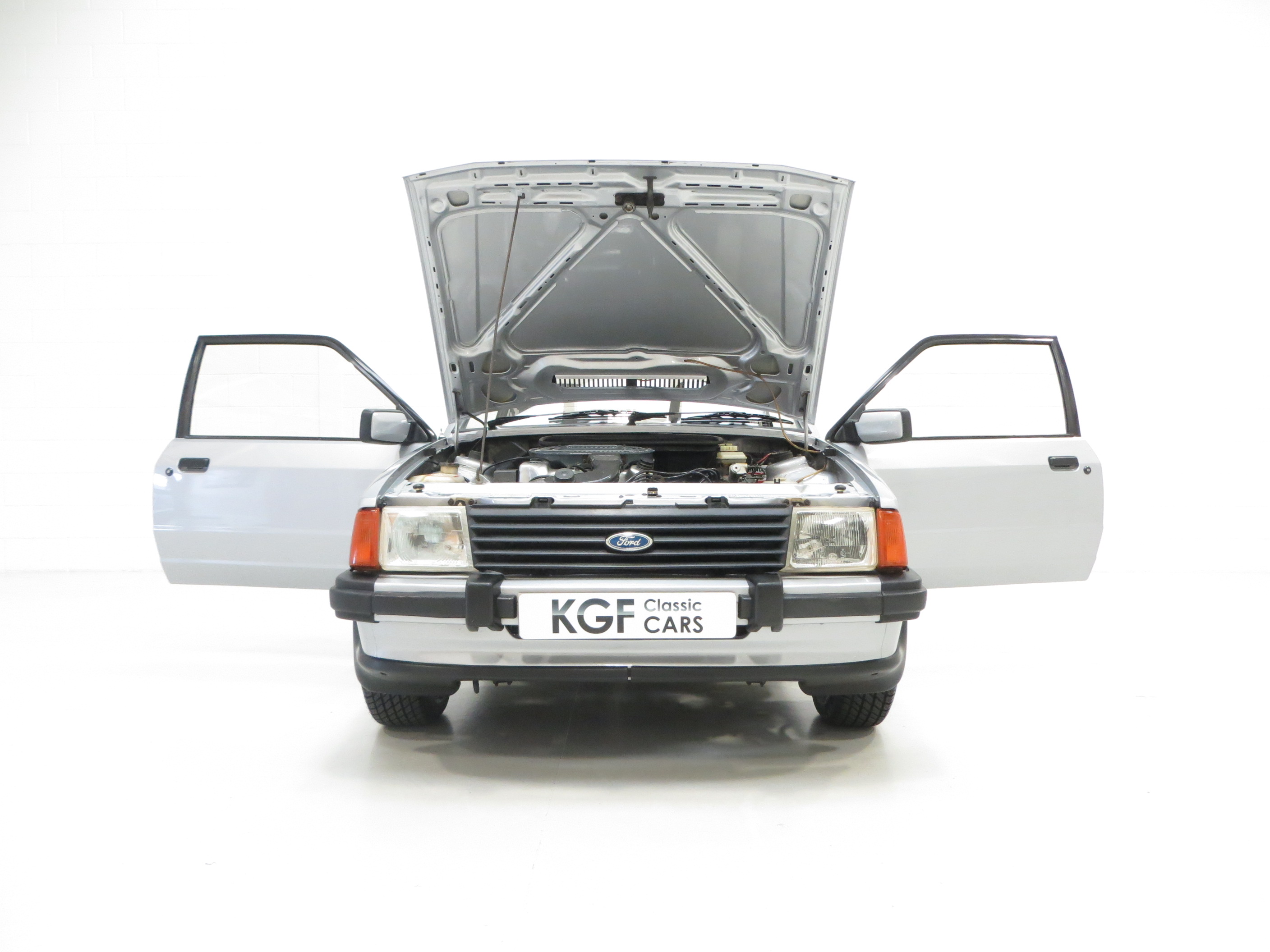Fitted with Fords 1.6 Compound Value angle Hemispherical chamber (CVH) engine mated to a twin venture weber carburettor, this car sprints along with 96bhp at 6000rpm giving a 0-60 of 9.2 seconds and a top speed of 113mph. The unmolested engine bay is very clean and displays clearly prominent factory plates and original stickers. Ford aficionados will be pleased to see a Motorcraft battery and correct service items such as Motorcraft oil filter, starter motor and hoses. The correct 4-speed manual transmission fitted to pre February 1982 cars is light and precise.