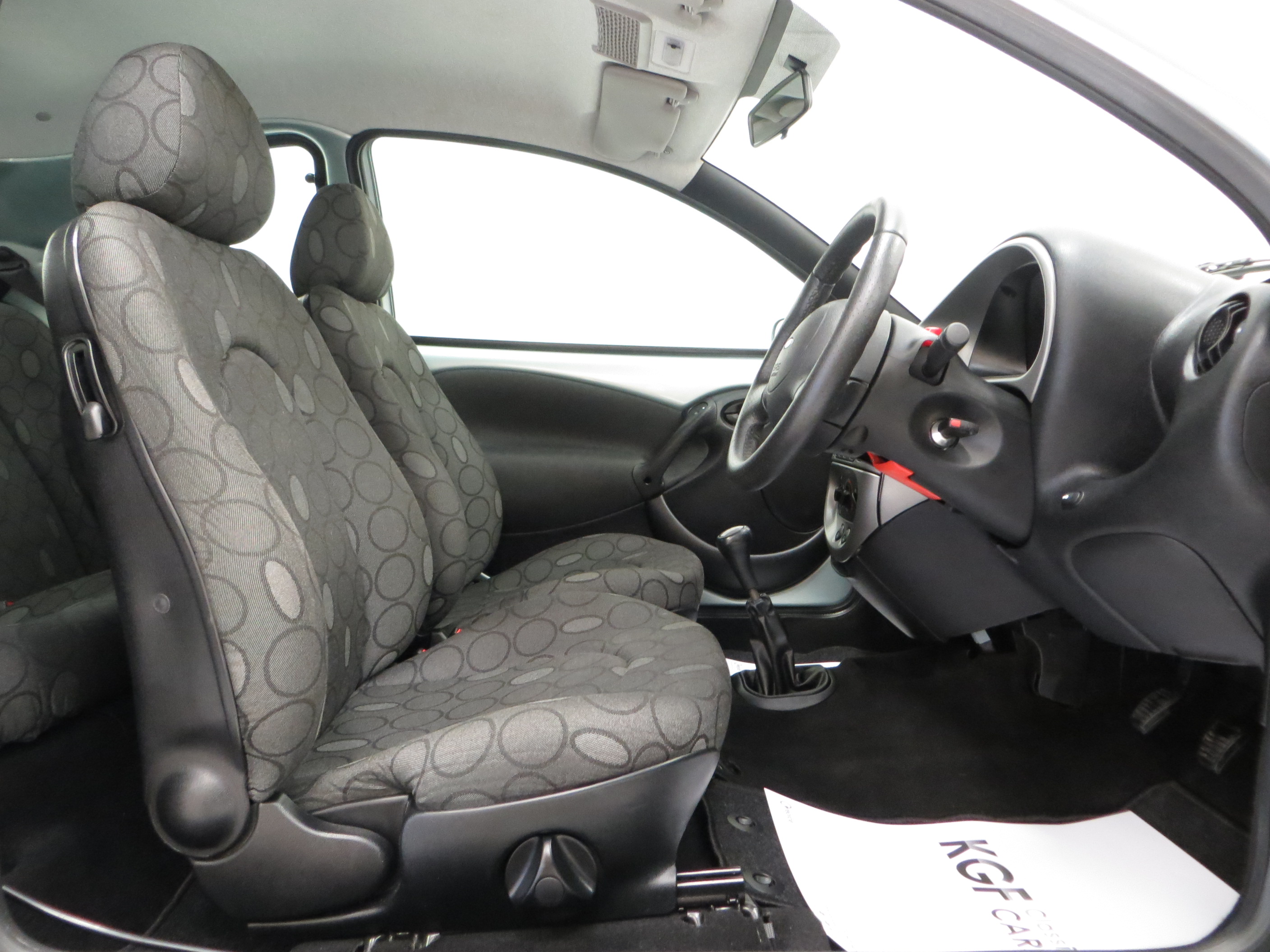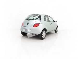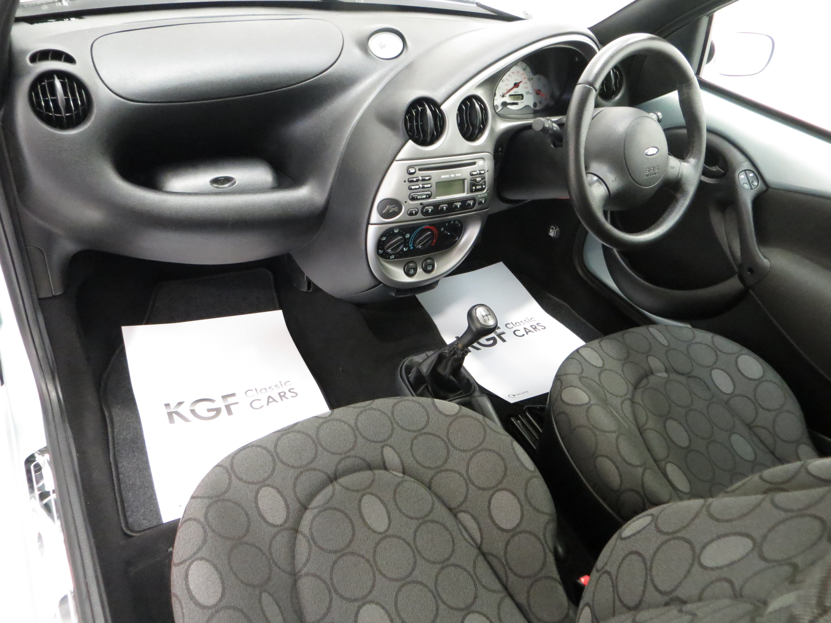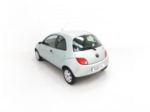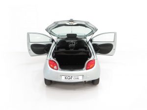Steel safety cage, front and rear energy absorbing crumple zones, side-impact door beams, Passive Anti-Theft System with immobiliser, body colour bumpers and door mirrors, halogen headlights, central locking, remote boot release, electric front windows, opening rear vents, leather trimmed steering wheel and gear knob, driver’s airbag, bright finish scuff plates with KA logo, sports style silver dials, Cosmos analogue clock, driver’s seat height adjustment, 50:50 split back seats, door cup holders, rear cup holders, headlining storage net, revolving lid glovebox, stereo CD Model 6000. Dealer options; Ford carpet mats.