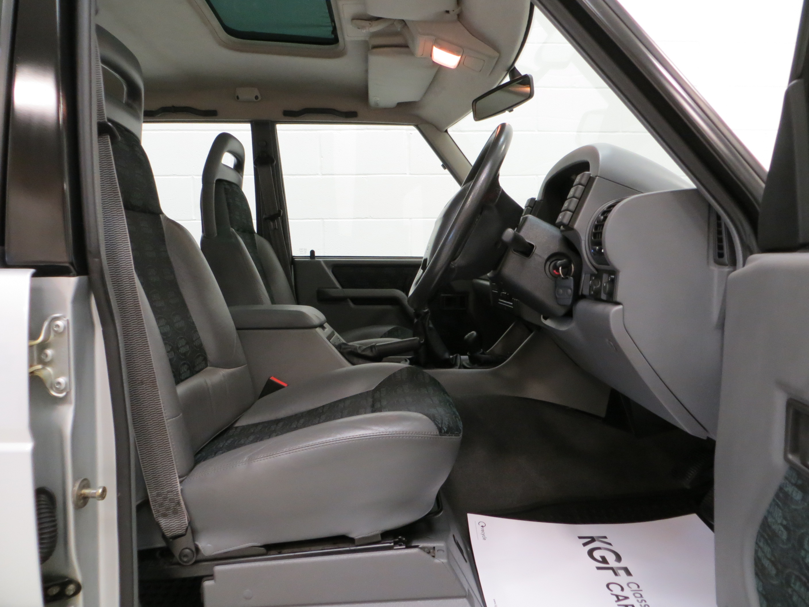 Finished in factory original Altai Silver Metallic, (Code 567), the paintwork boasts a bright polished shine and uniform finish. This low mileage example certainly has never exploited its off-road capabilities leaving all factory panels preserved and damage free. Only tiny paint chips and minor markings to the plastic trim will show upon very close scrutiny, utterly insignificant. The underside and common vulnerable areas associated with early Discovery’s have remained in excellent order, as have all robust and chunky trim sections and Land Rover badged light lenses. Main Dealer branded number plates and spare wheel cover remain fitted, as do the original XS decals to the lower doors, a feature often lost on used painted examples. A very well cared for Series One Discovery, virtually impossible to find in such wonderful pampered condition.