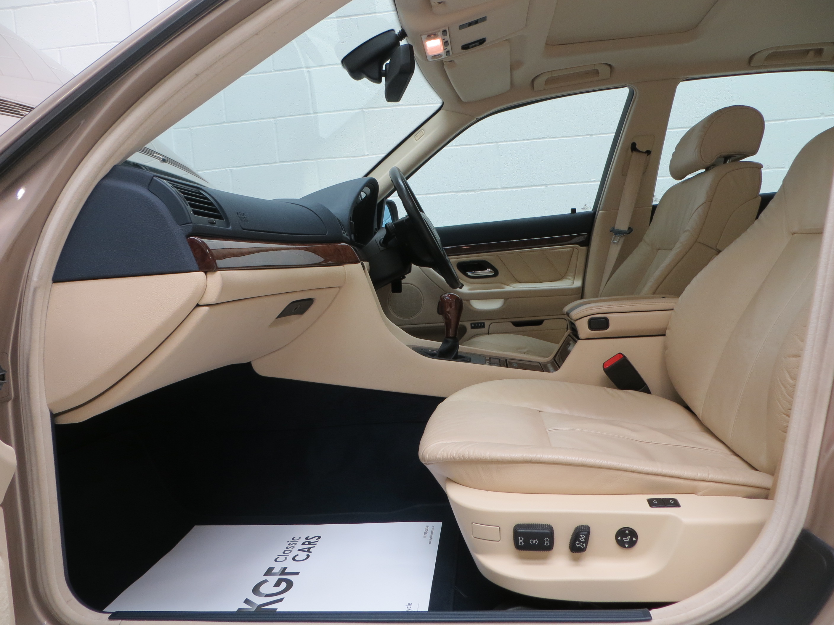 This beautifully elegant E38 735i was factory ordered in Sahara Beige Metallic, (Code 4434) and has been constantly garaged by the original and only owner. The stunning original paintwork is simply magnificent with a brilliant polished shine and uniform finish throughout. With absolutely no stuffs or dings and only a minuscule paint blemish to the boot lip worthy of mention, this example has been preserved to an amazing standard. All trim pieces are perfect, as you would expect from this pampered, one owner, low mileage example. The expensive optional Xenon headlamps have crystal clear lenses, as do all other light fitments. An imposing executive 7 Series, an absolute delight for any BMW enthusiast.