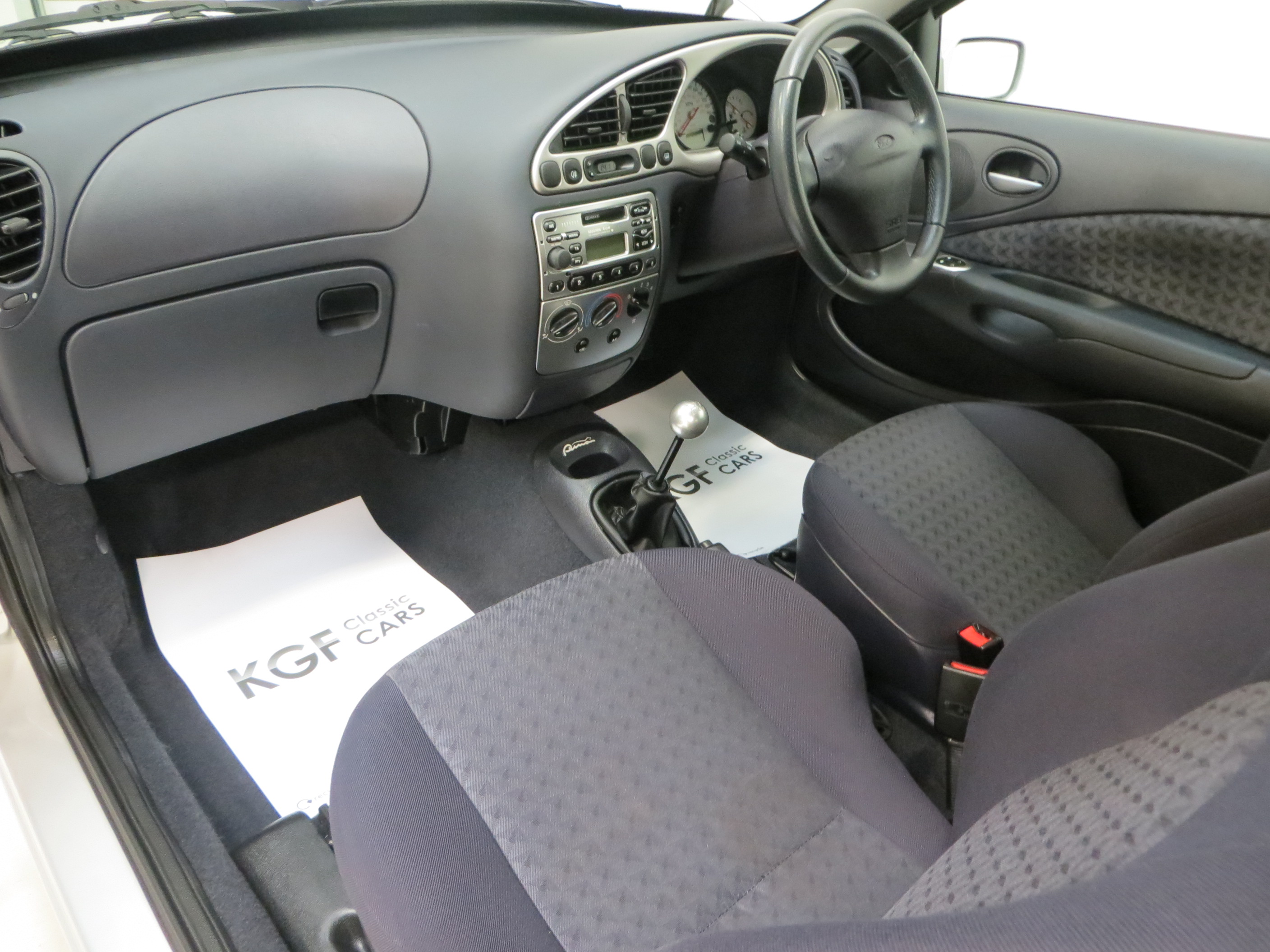 Front air dam, front aerodynamic spoiler, colour coded door mirrors, headlamp system with three projector lamps, tinted glass, rear quarter light Puma emblems, variable ratio power assisted steering, anti-lock brakes, traction control, driver airbag, pyrotechnic front seat belt tensioners, remote central locking, remote tailgate release, aluminium finish interior, leather sports steering wheel, Ford 5000 RDS stereo system. Factory options; Air conditioning, metallic paint.