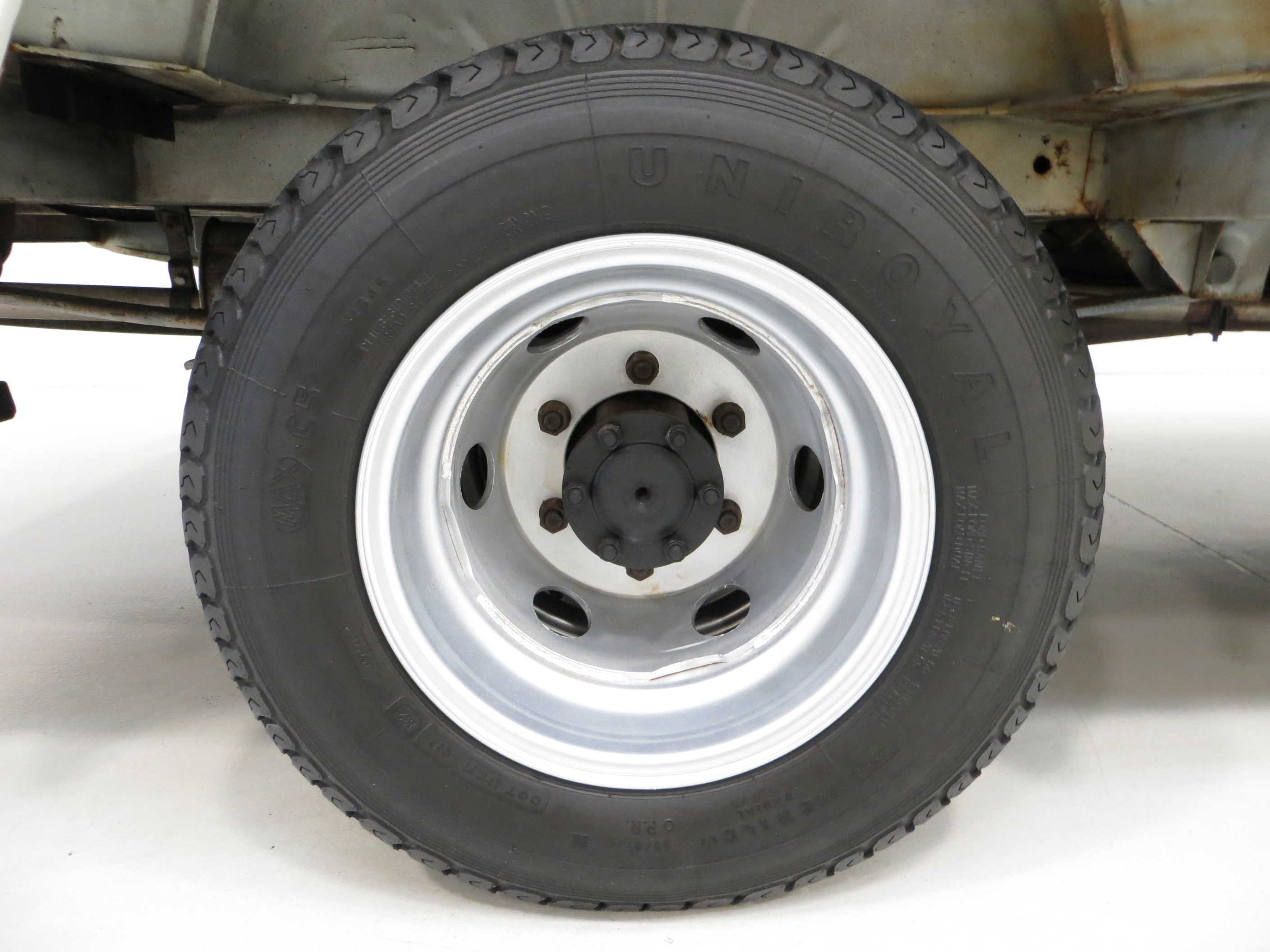 All wheels are the original heavy duty pressed steel items with the twin rear wheel configuration, and each rim is in superb condition with factory stampings visible. All six tyres are the factory fitted Uniroyal 185 R14C items which have masses of tread remaining, but a change is advisable if regular use is intended. Dual-line servo-assisted hydraulic brakes with front discs and self-adjusting rear drums operate as they should.