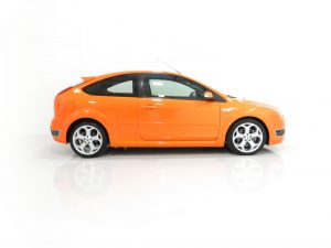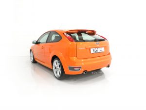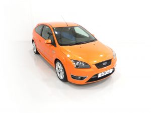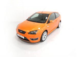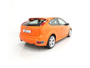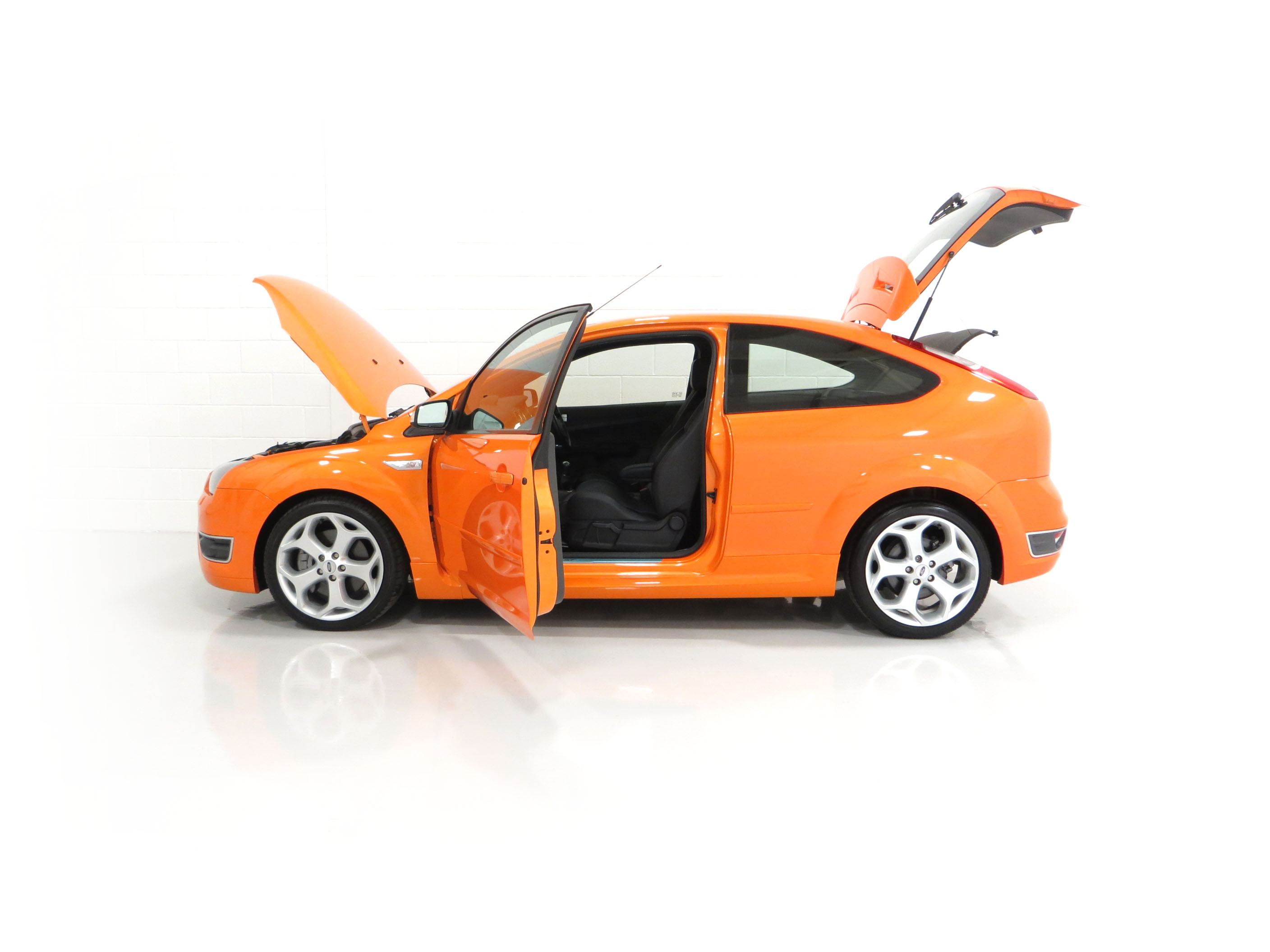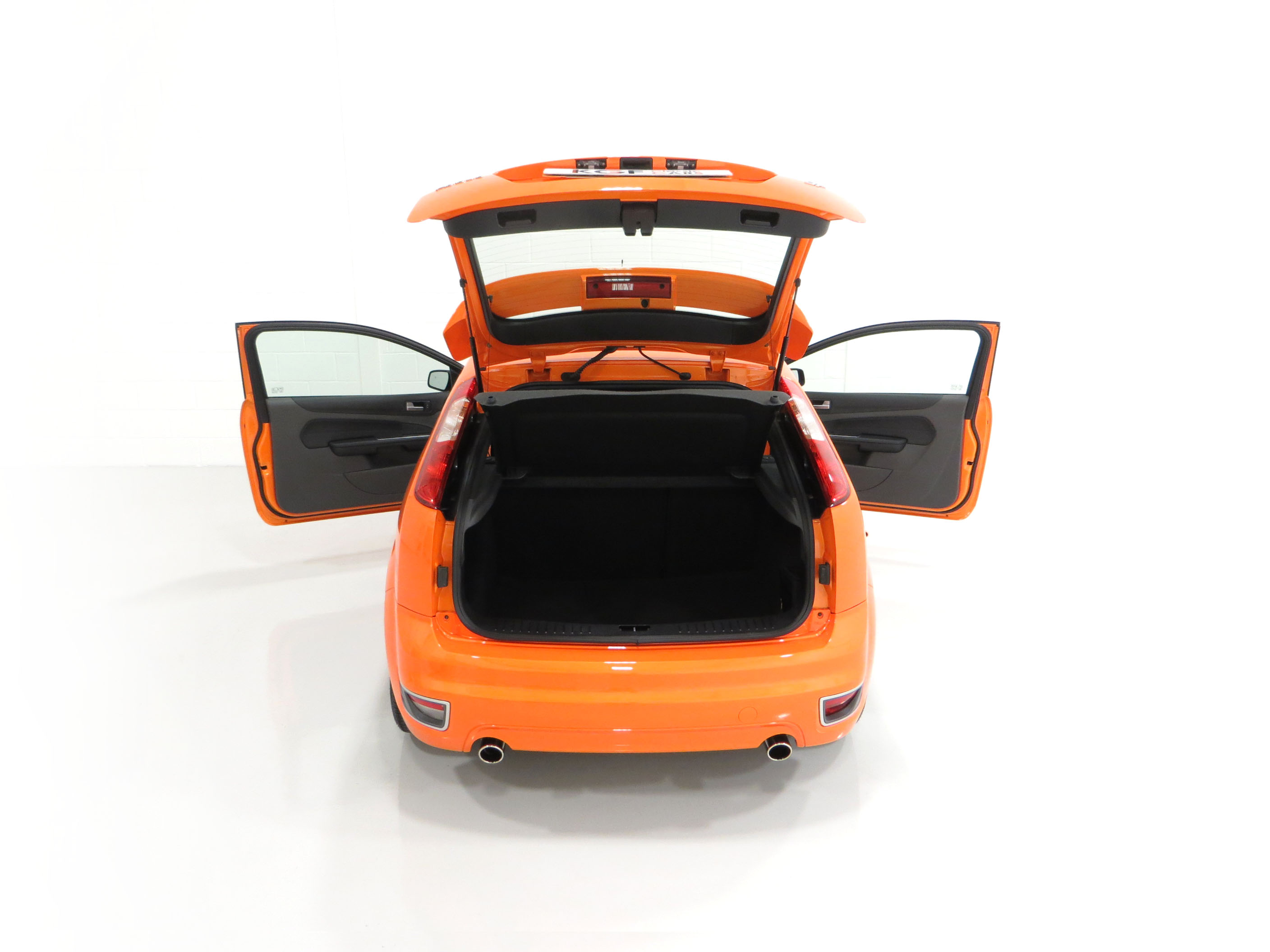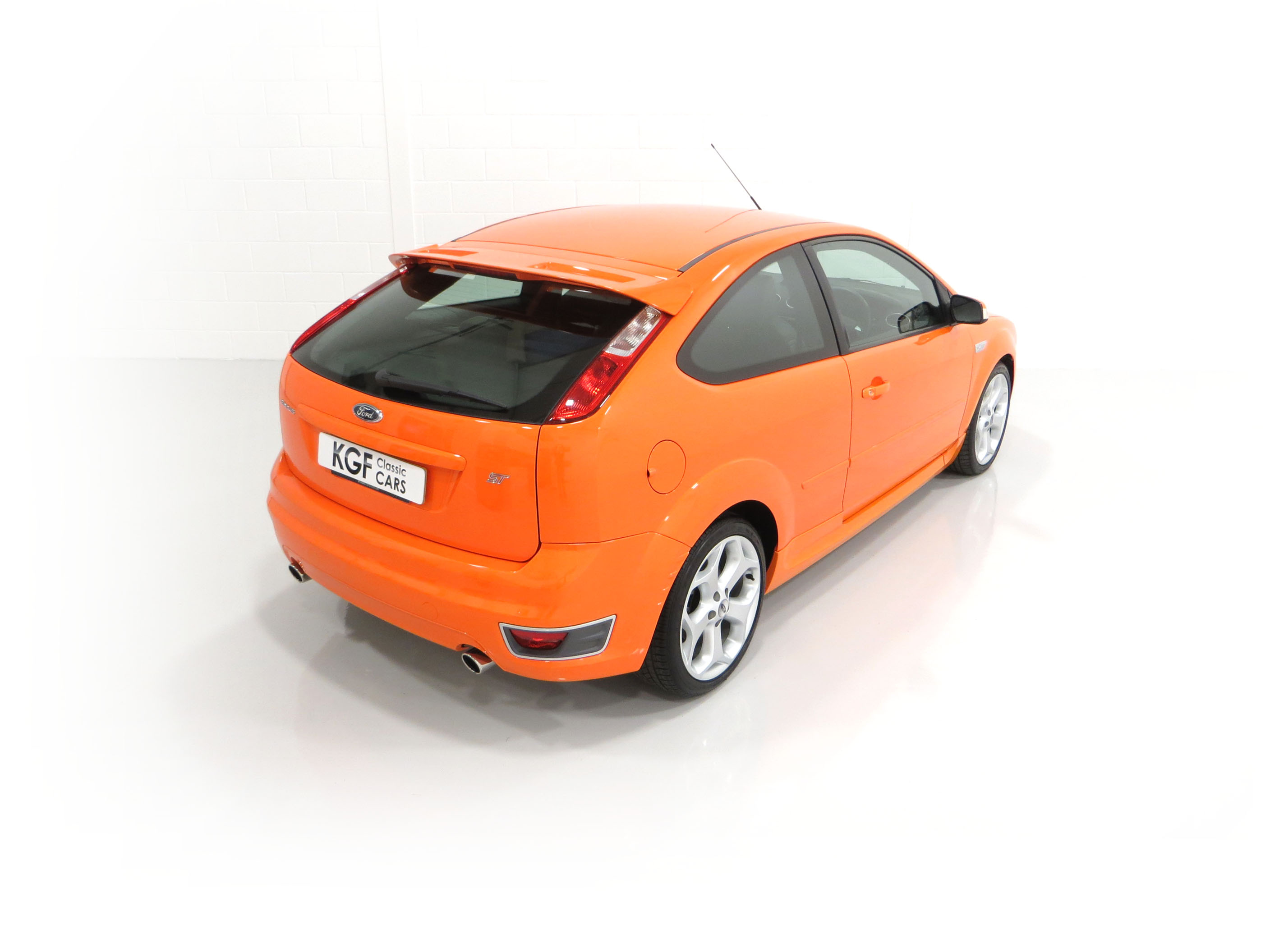 Exclusive ST sports body kit, unique ST bumpers and mesh grille, ST single wing spoiler, chrome tipped twin sport exhaust tailpipes, side and curtain airbags, Electronic Stability Program, Passive Anti-theft System (PATS), CAT 1 Thatcham Approved alarm, Bi-Xenon headlamps with automatic levelling and washer jets, air conditioning, Quick clear front windscreen, auxiliary instrument panel housing turbo boost, oil pressure and oil temperature gauges, ST Sports steering wheel, jet black headlining, submarine lighting, brushed aluminium gear knob and handbrake grip with racing pedals. Exclusive ST-3 equipment; Ford Sony MP3 stereo radio/6CD, Full leather Recaro sport seats, 10-way manual adjustment and seat heating to front seats, rear sculptured bench. Factory options; Electric Orange Tri-Coat metallic paintwork. Dealer options; Space-saver spare wheel, Fortron Shield protection, carpet mats.