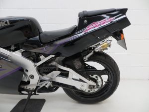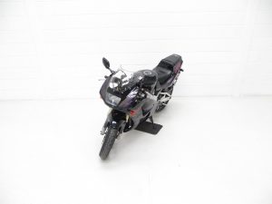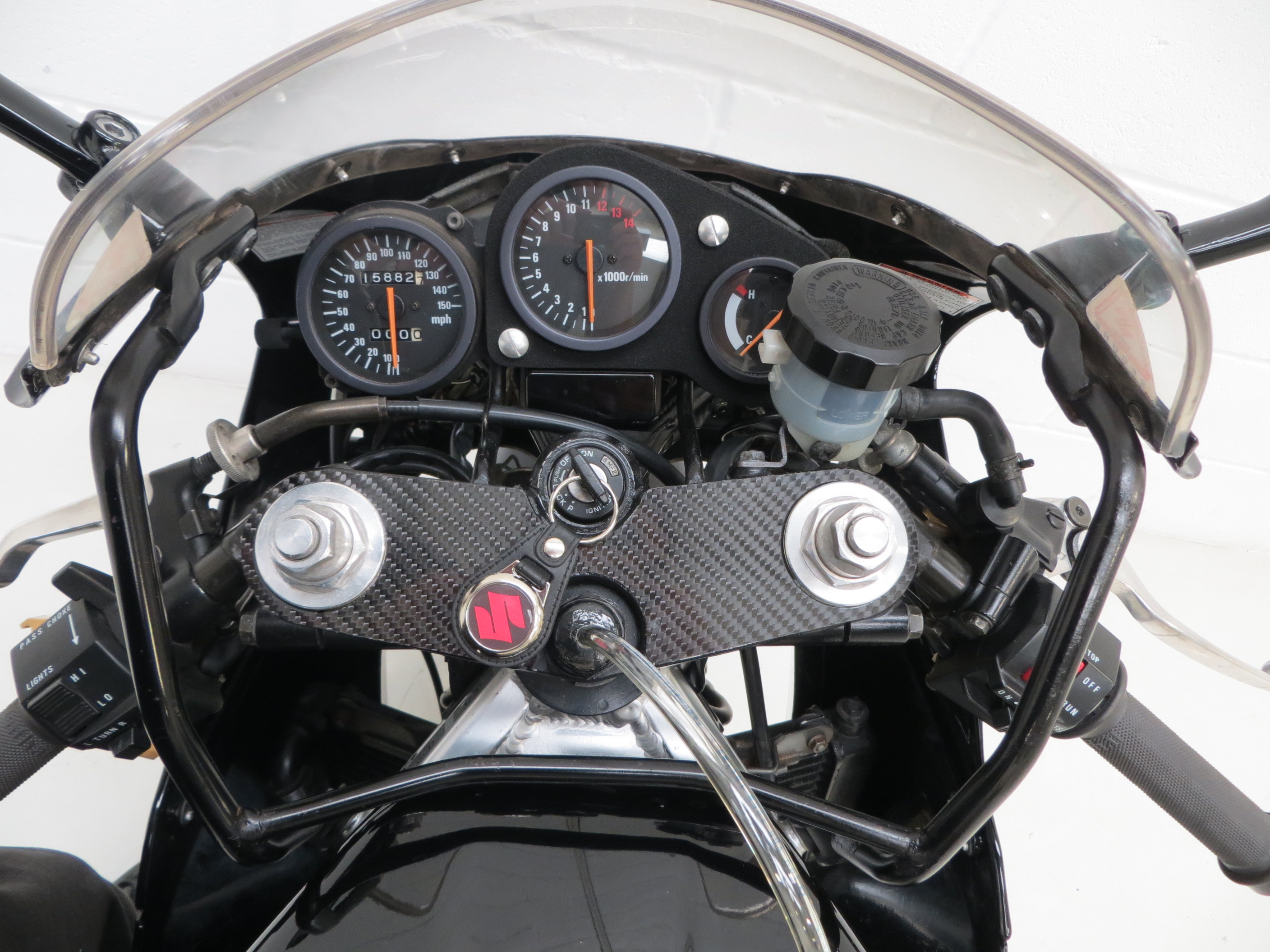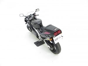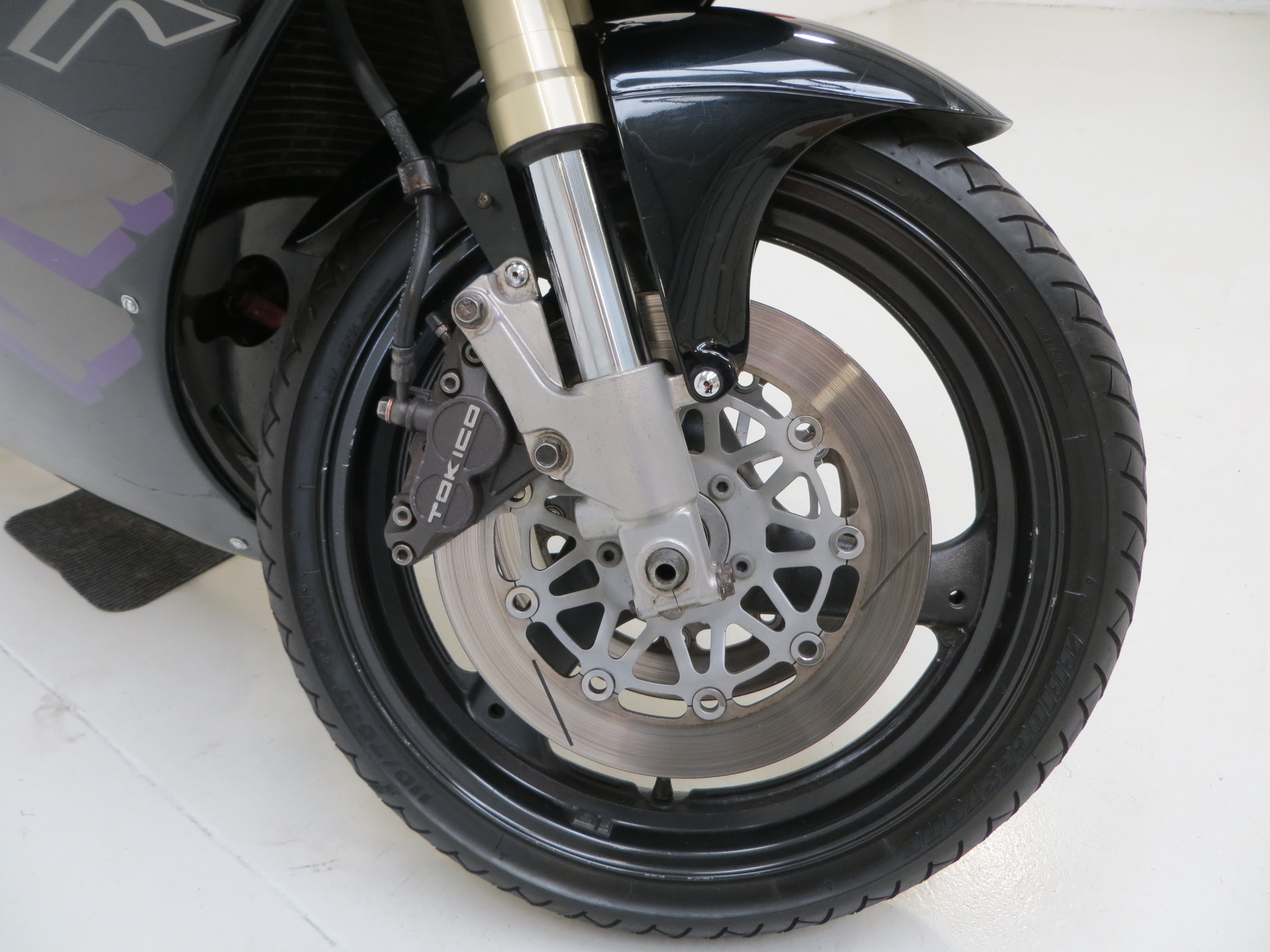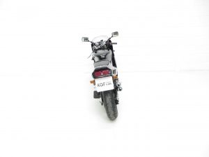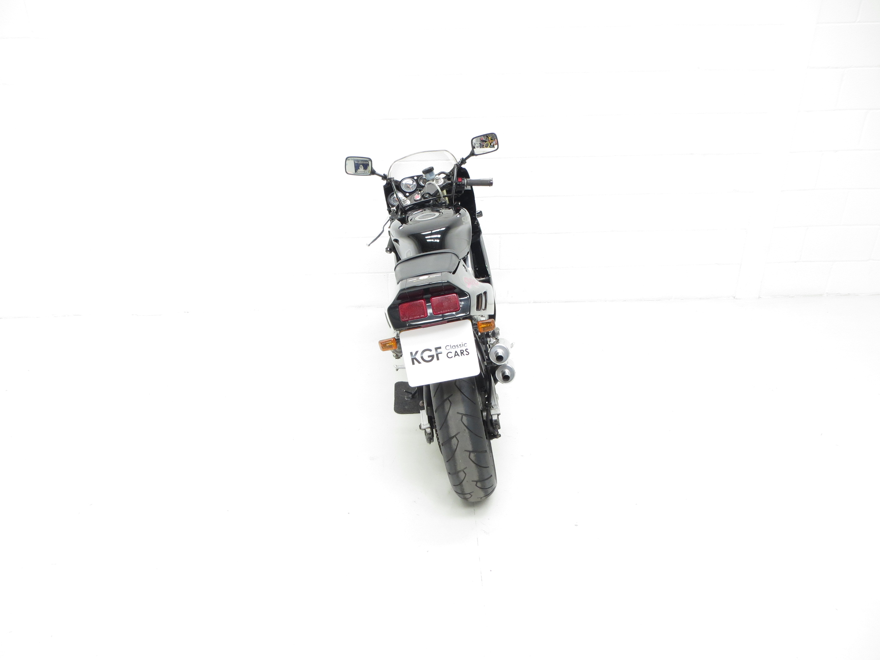 Hollow three spoke 17” cast-aluminium wheels are lightweight and rigid and remain in unrestored factory black with quality Bridgestone BT45 110/70 R17 and BT96 150/60 R17 tyres fitted front and rear respectively. The high performance braking system features enlarged 300mm dual front discs with the correct Tokico callipers and a single 210mm rear disc.