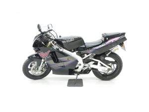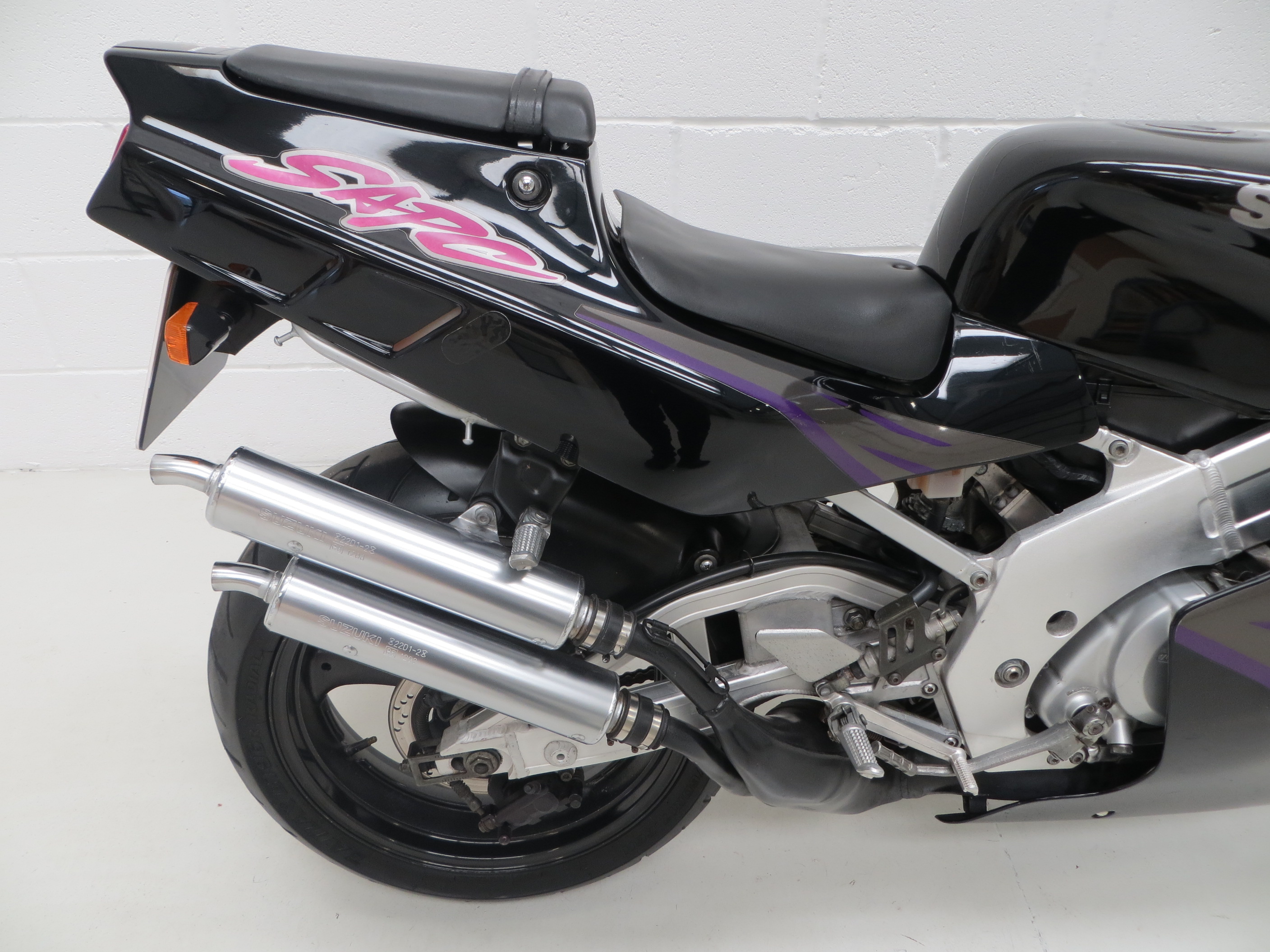 The RGV250 ran from 1987 to 1997, but they were only officially imported into the UK from 1989 (RGV250 K) to 1994 (RGV250 R). This rare genuine UK (RGV250 P) example was registered new on 20th August 1993 by Suzuki main agents Bridge Motorcycle World to first owner Mr Jason Chandler. Having covered 15,882 miles prior to being put into dry storage in 2010, this enthusiast owned bike has since been on display and formed part of an impressive motorcycle collection, a 50+ assortment of classic bikes. The original Suzuki service record with factory build sticker intact has been kept in the history file along with invoices and many MOT certificates from the pre storage period. The original key and Suzuki fob has been kept. One of the best unrestored UK examples there is and something for the Suzuki enthusiast or 80’s/90’s sports motorcycle collector to behold.