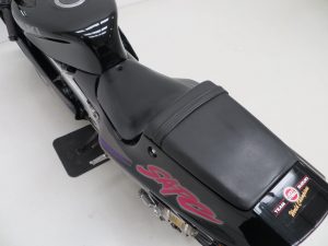 The lightweight race-inspired RGV250 series offered an exciting 250cc streetbike package with many features and performance developments taken from the Team Suzuki RGV Gamma racebike. Finished in the original combination of Black Metallic, (Code 6BY), with Purple decals, the paintwork is absolutely factory original and presents well. Light aging to the finish can be seen and the factory fitted decals are fully intact. Beautifully preserved, all farings and trim sections are in excellent condition and factory identification plates, stickers and labels remain fitted. The chassis inscription and stamping on the frame and stock respectively are clearly visible to easily affirm the matching numbers credentials. A wonderfully unmolested example and a fantastic testament to the Team Suzuki Grand Prix legend.